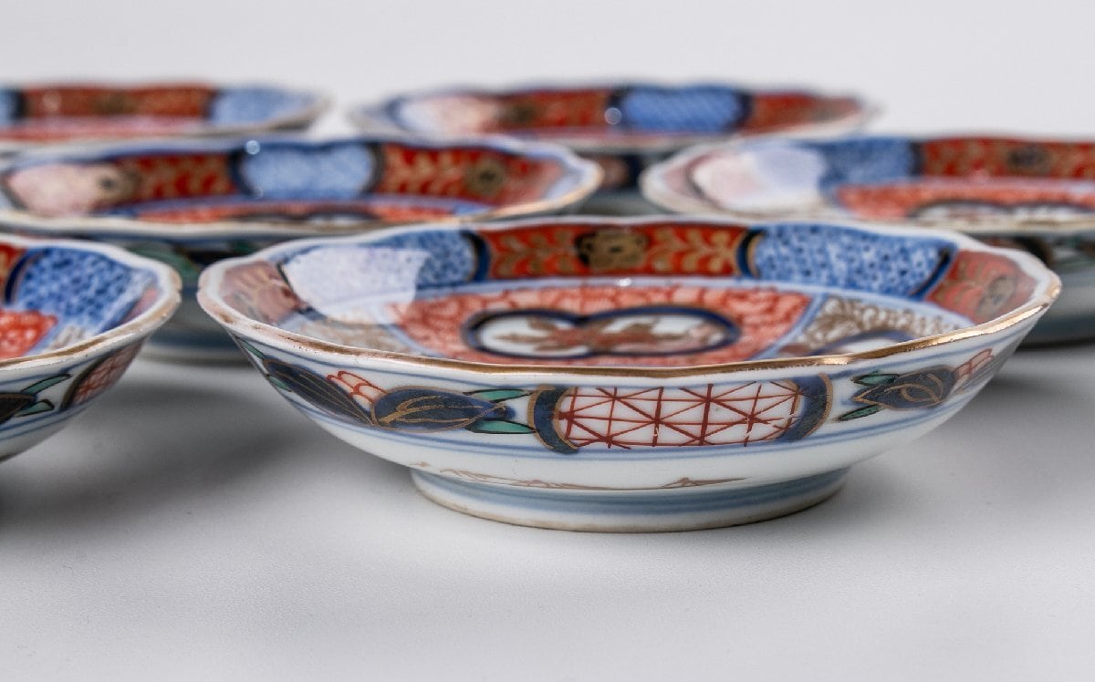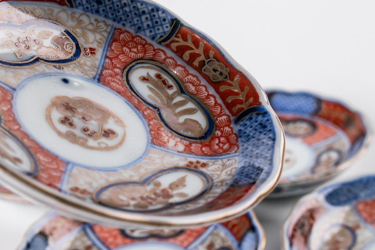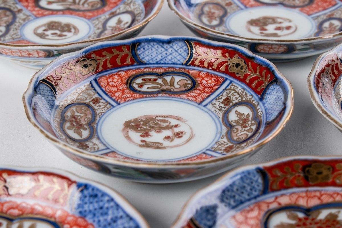 古伊万里 染錦草花文小皿 豆皿 6客 明治時代 F565F バラ売り可能です