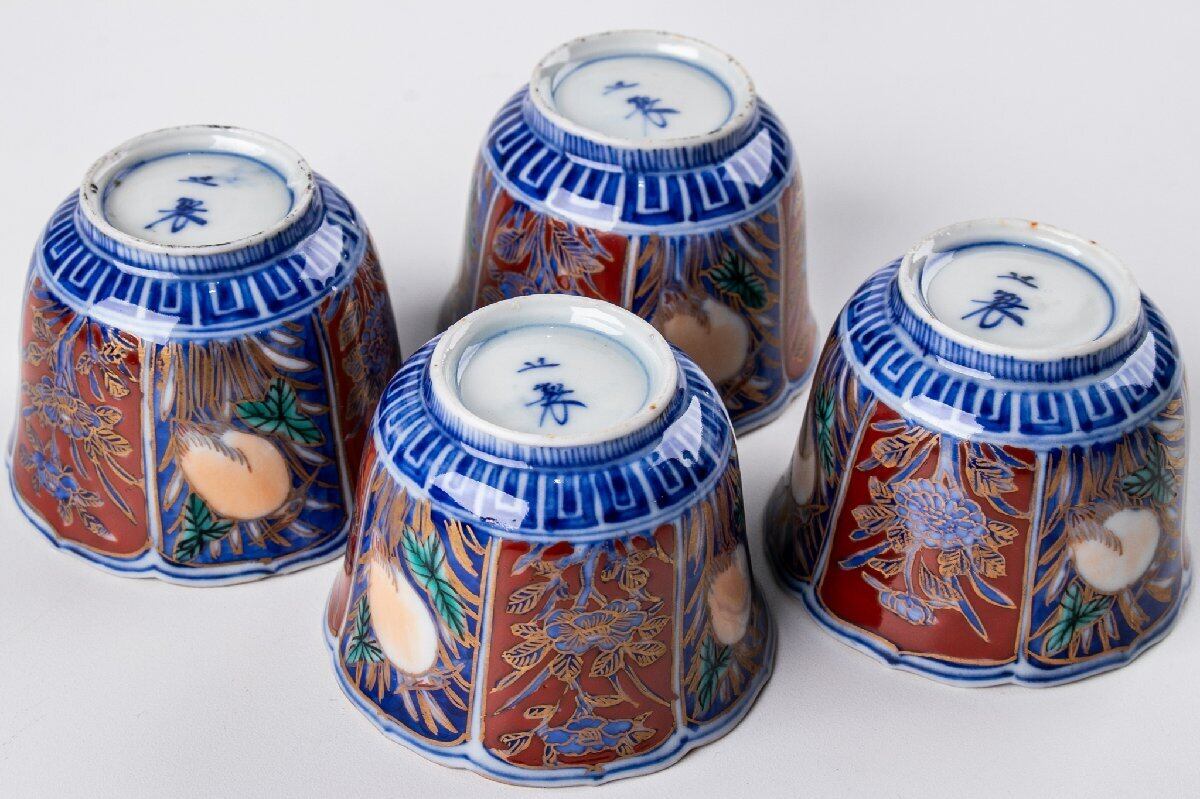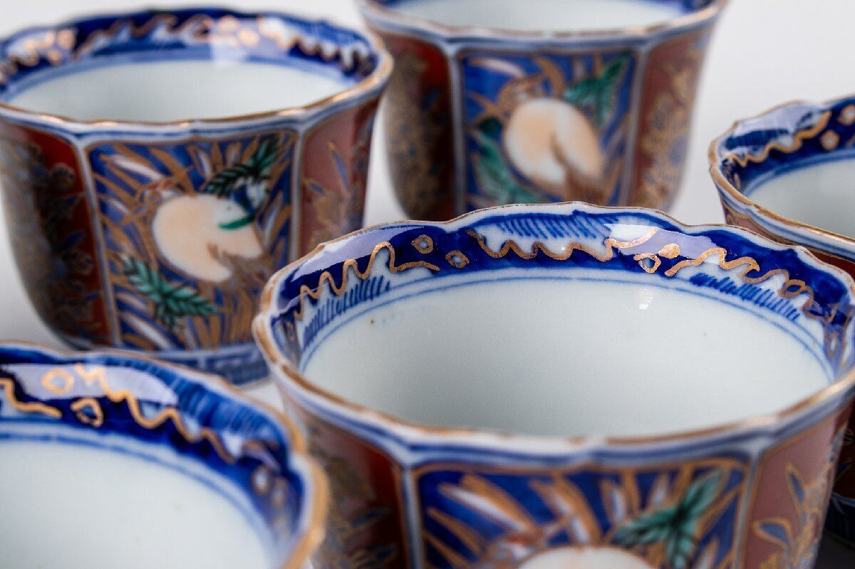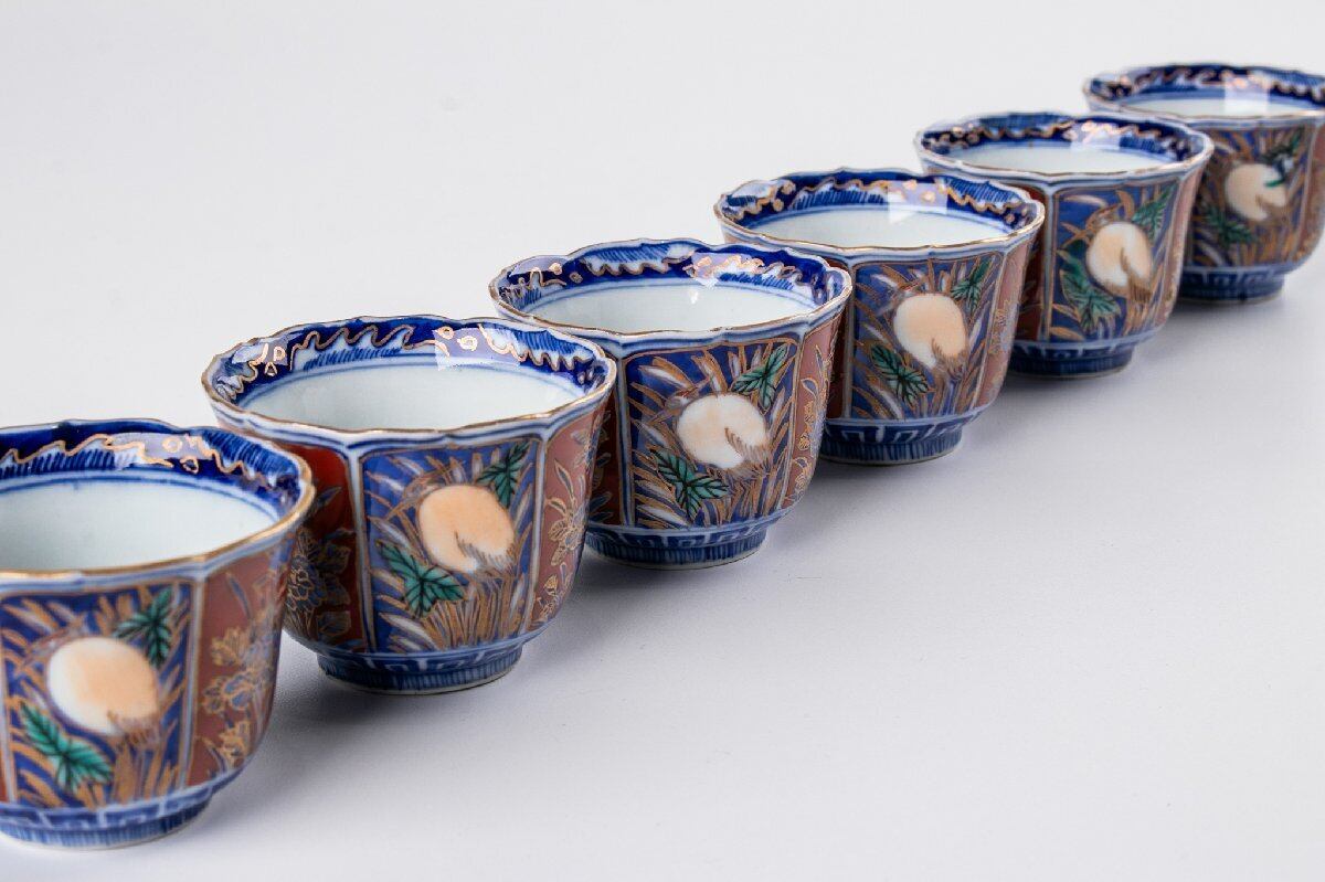 辻製 伊万里 染錦鷺草花文猪口 6客 F565E バラ売り可能です