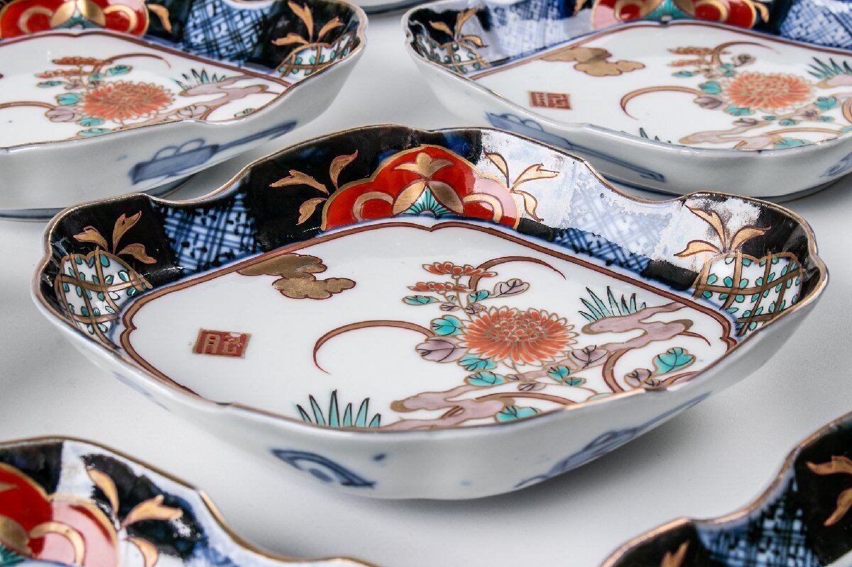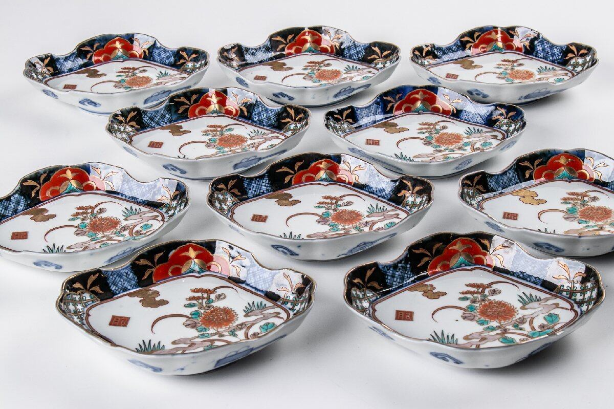 古伊万里 染錦草花文刺身皿 10客 明治時代 F545A バラ売り可能です