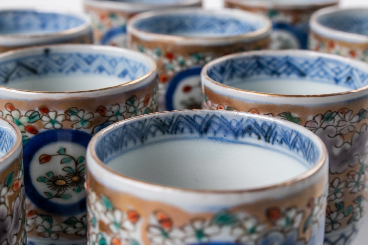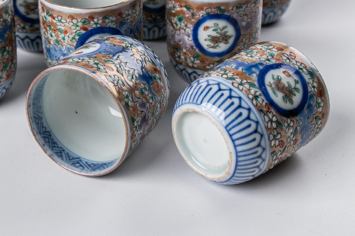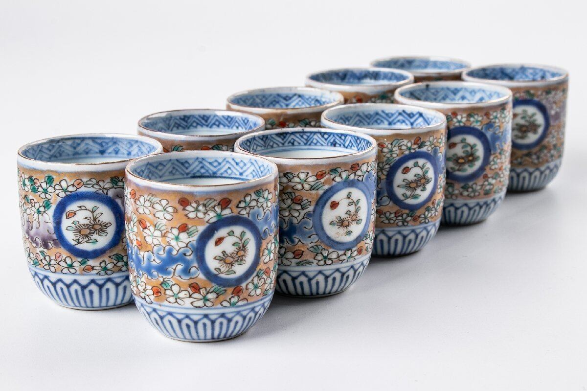古伊万里 染錦花詰め丸文猪口 10客 明治時代 F516B バラ売り可能です
