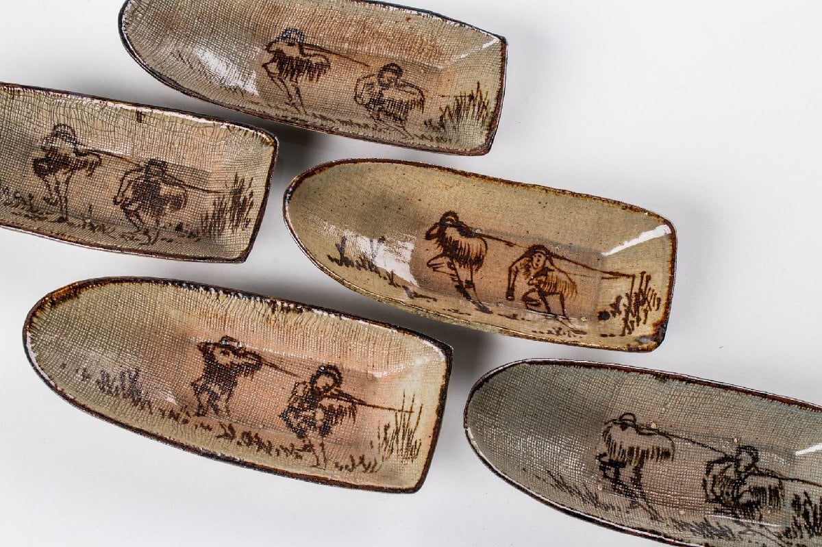 楽雲焼 舟形向付 5客 箱付 F570A