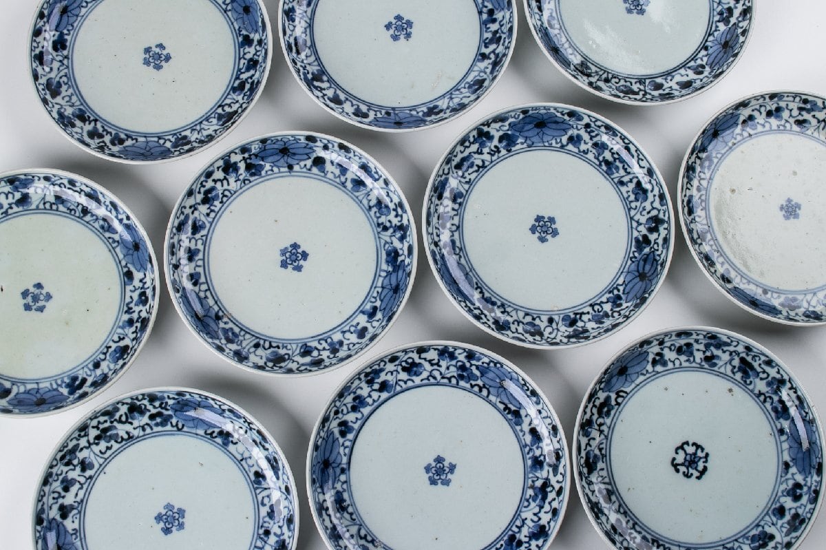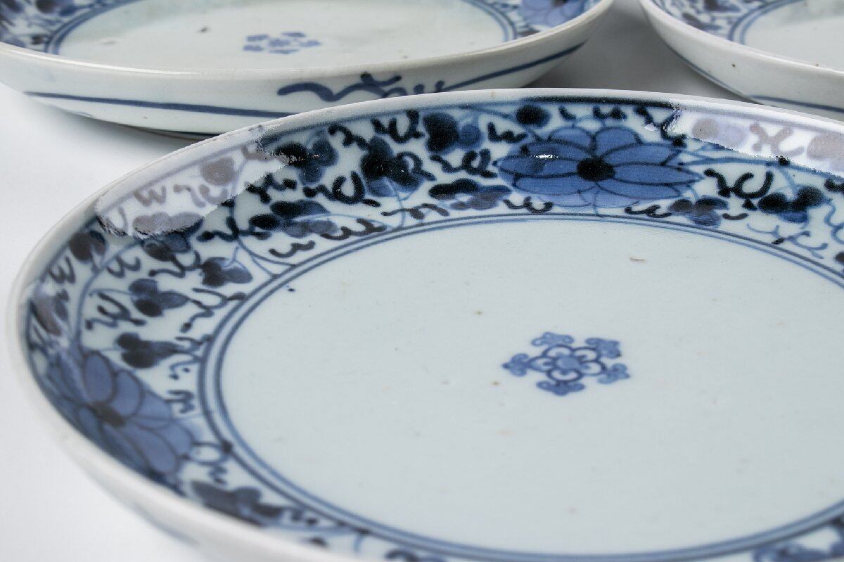 古伊万里 染付牡丹唐草文六寸皿 10客 江戸後期 F496 バラ売り可能です