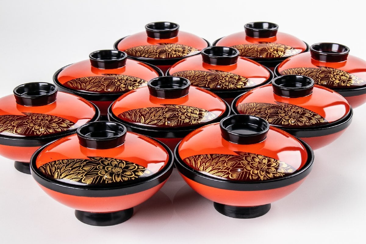 輪島塗 沈金蒔絵吸物椀 10客 F580 バラ売り可能です
