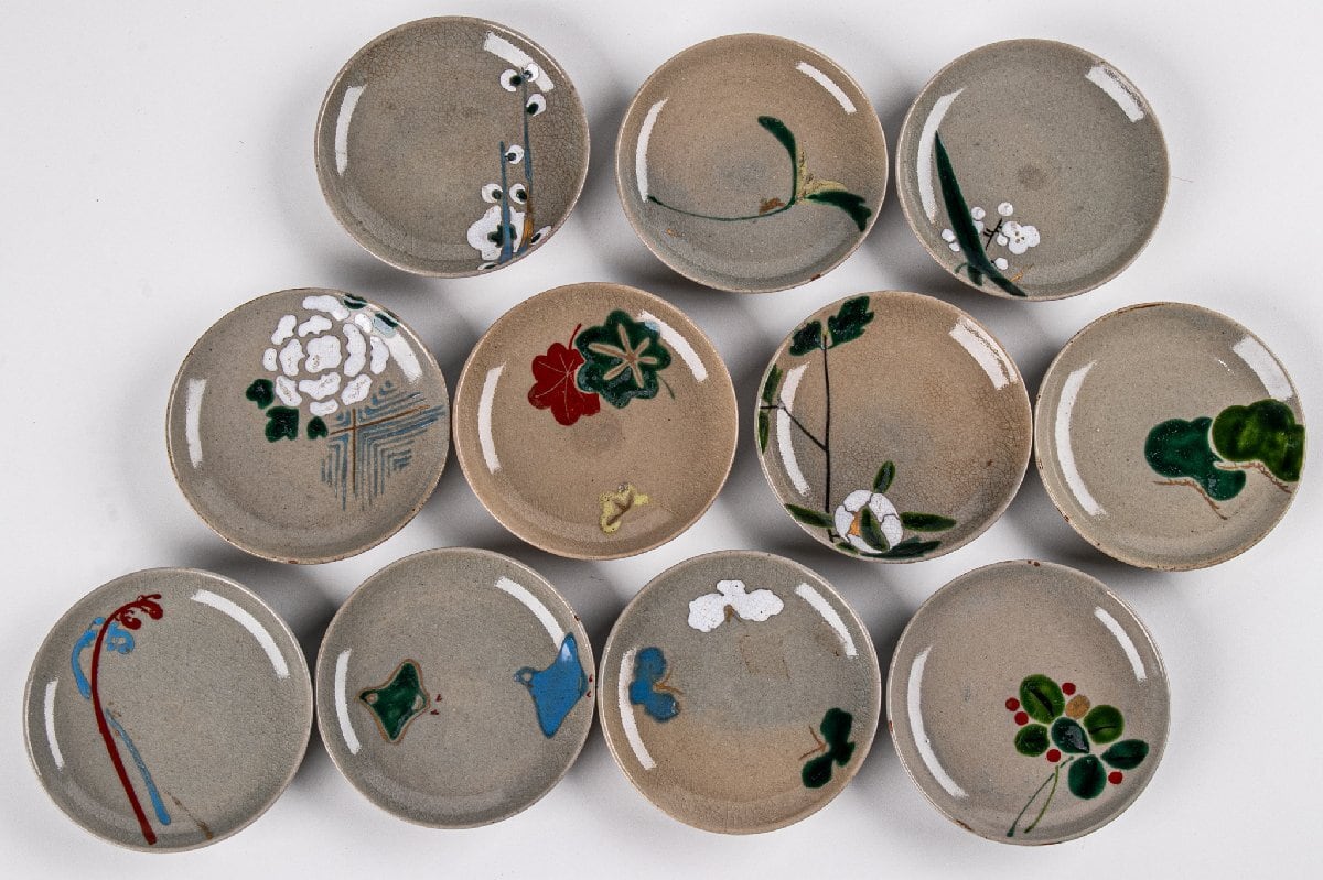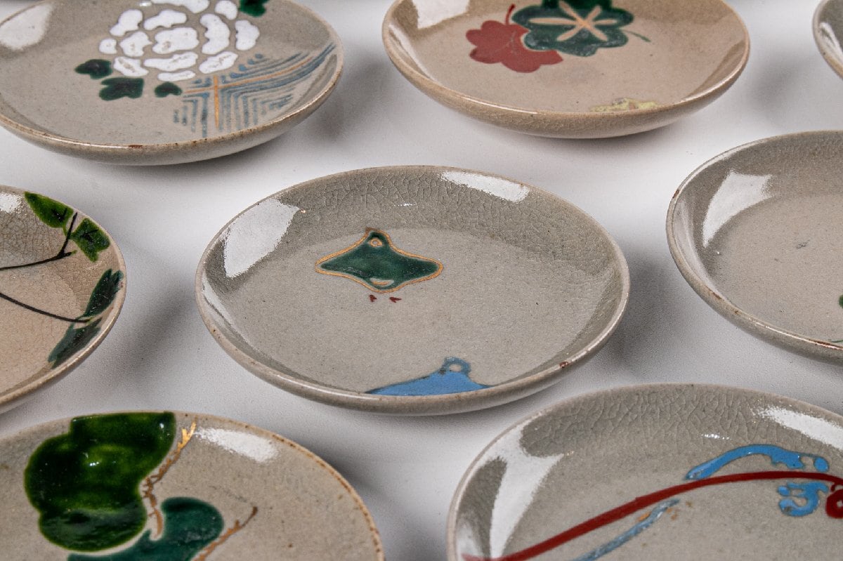 京焼 色絵絵替り小皿 11客 共箱 F608