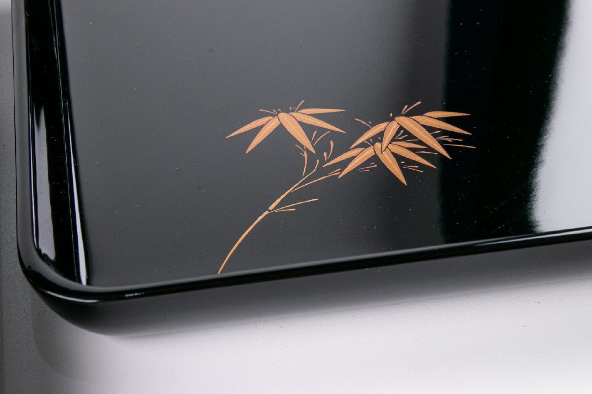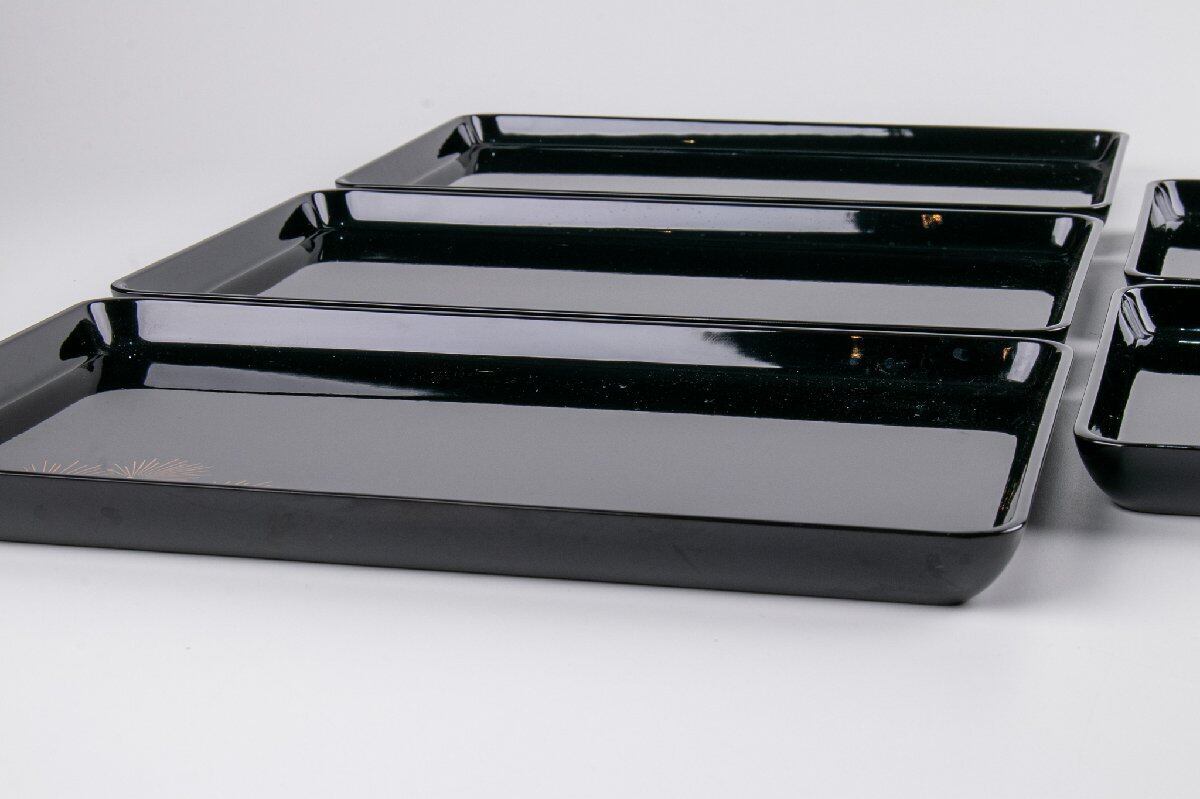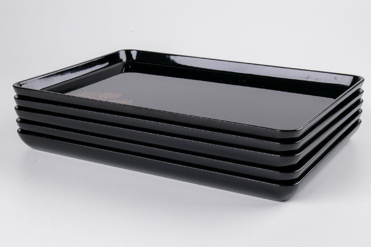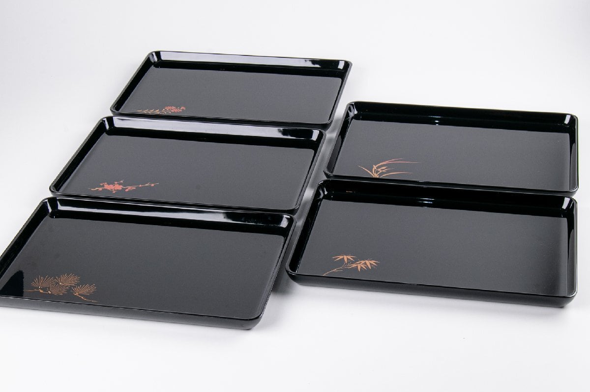 輪島塗 真塗五清図蒔絵 脇引き盆 5客 F616