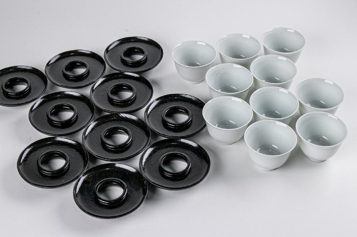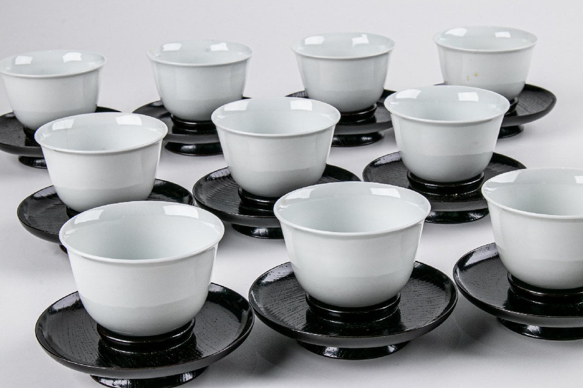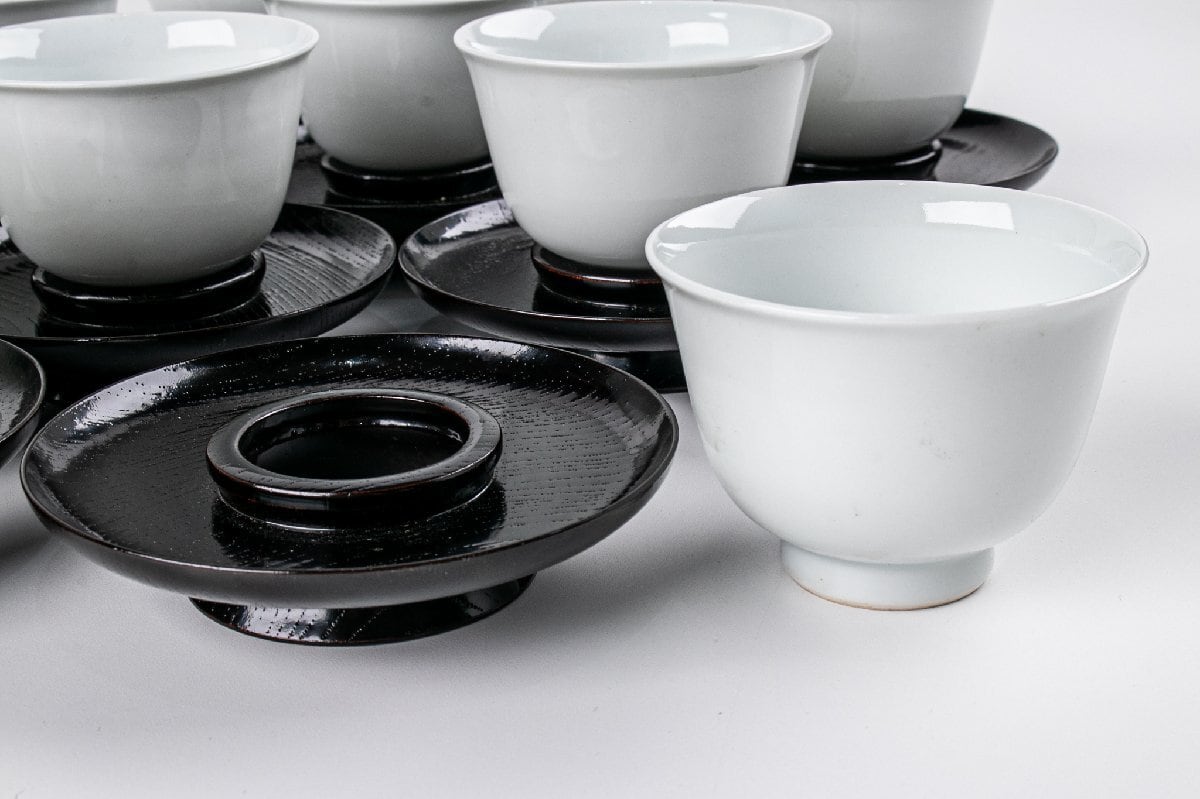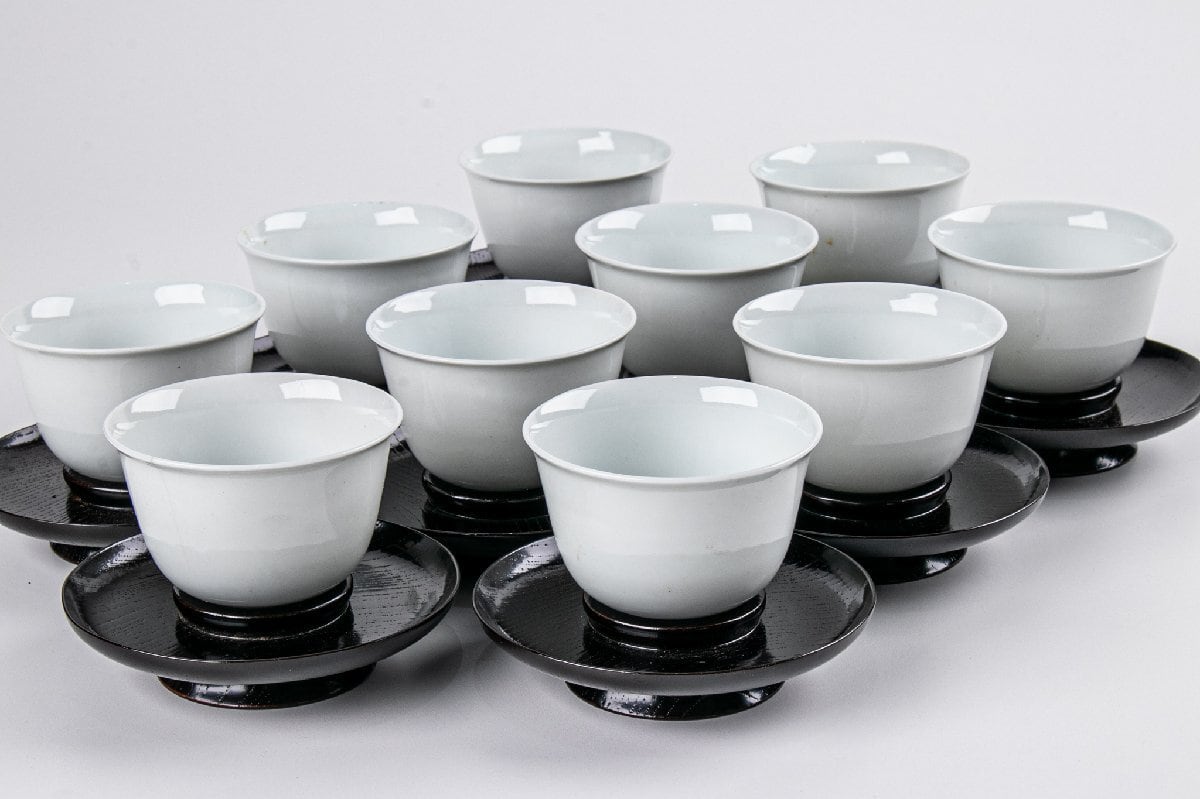 中村東洸 白磁汲み出し碗 天目台付 10客 F598