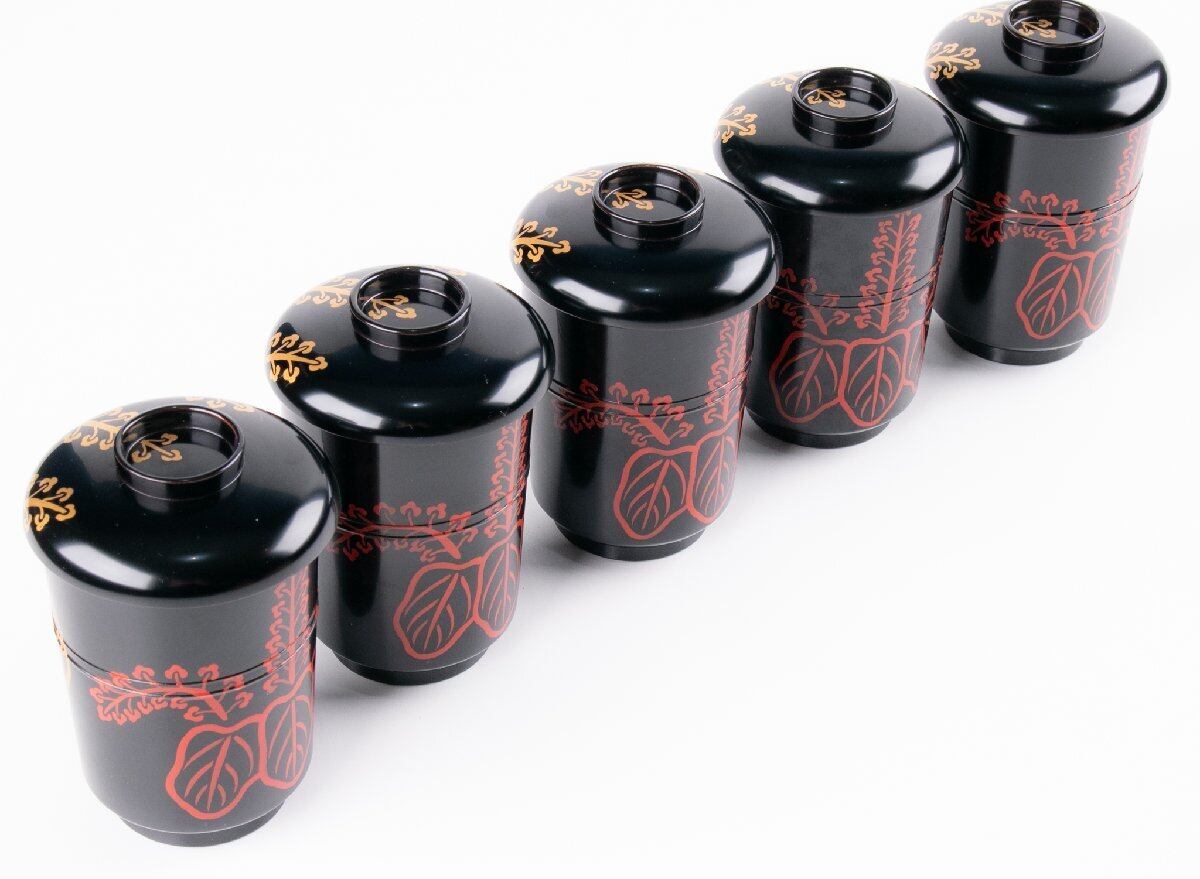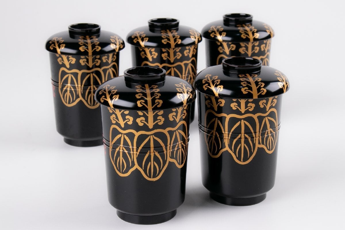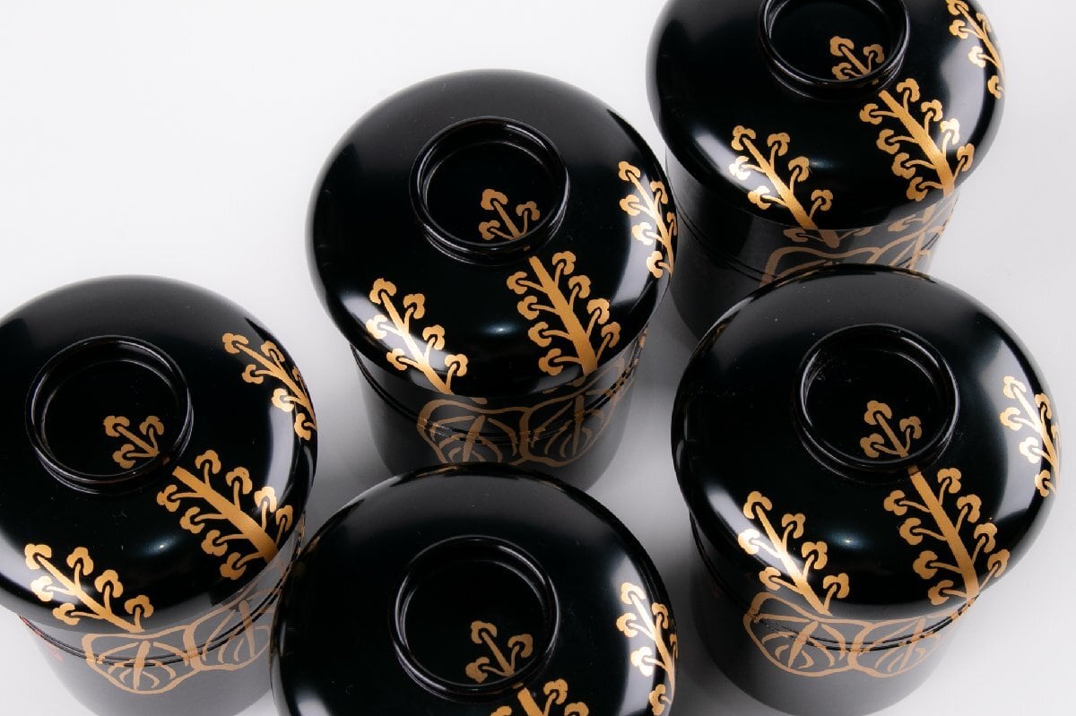 桐葉文小吸物椀 5客 箱付 F621A