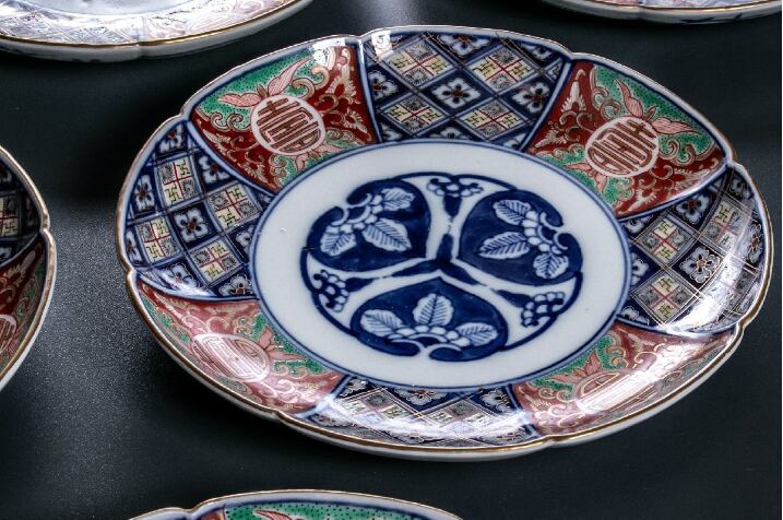 【うつわ】大聖寺伊万里 金襴手更紗文七寸皿 10客 箱付 明治時代 D249 バラ売り可能です 古伊万里 古美術 骨董 古玩 日本料理 懐石 料亭