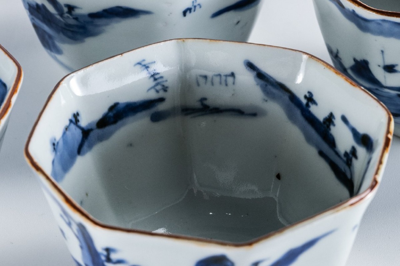 【うつわ】古伊万里 染付楼閣山水文八角向付 5客 江戸後期 E231A バラ売り可能です
