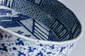 【うつわ】 古伊万里 染付更紗楼閣花唐草文大鉢 径24.5cm 江戸後期 E249