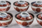 【うつわ】 古伊万里 染錦唐華文蓋茶碗 5客 明治時代 E468B バラ売り可能です