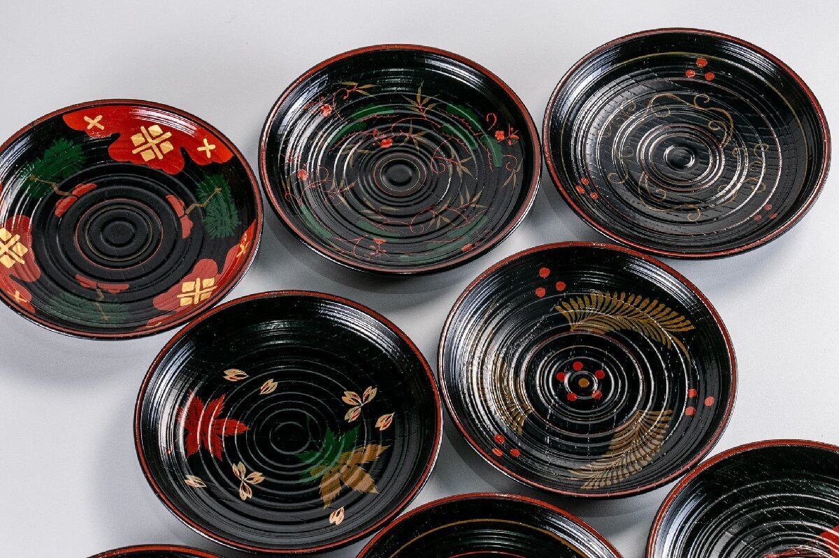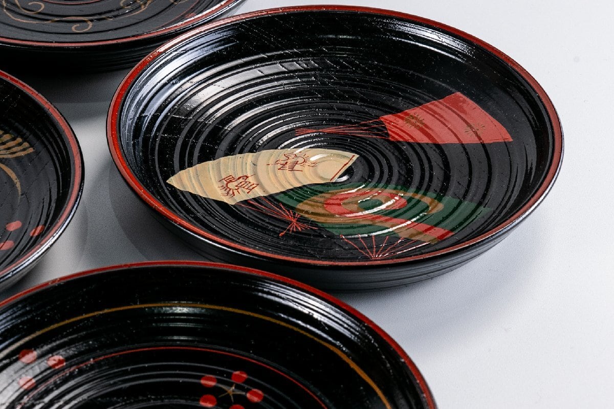 【うつわ】 塗師 田中表阿弥 長寛写 絵替銘々盆 10客 共箱 E743