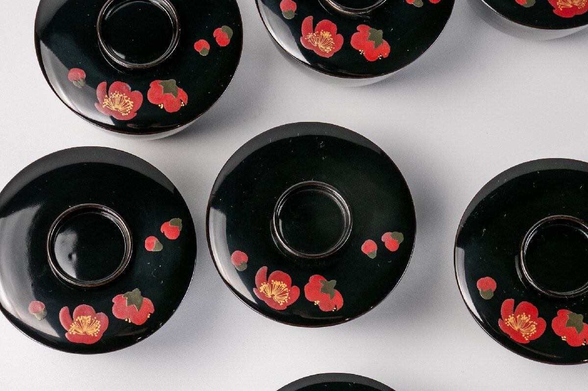 【うつわ】 真塗 梅花蒔絵 小吸物椀 5客 E783 バラ売り可能です