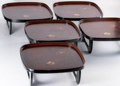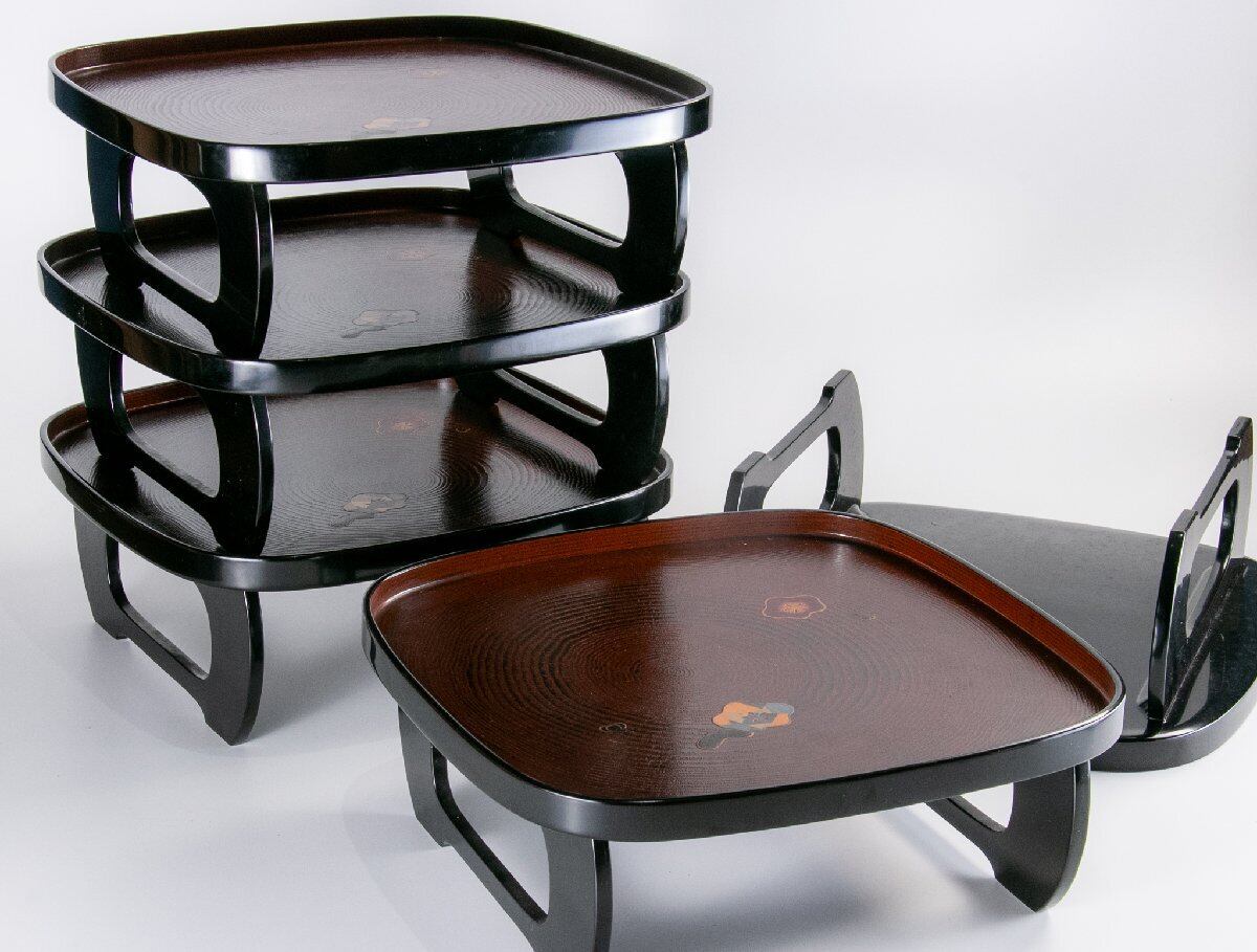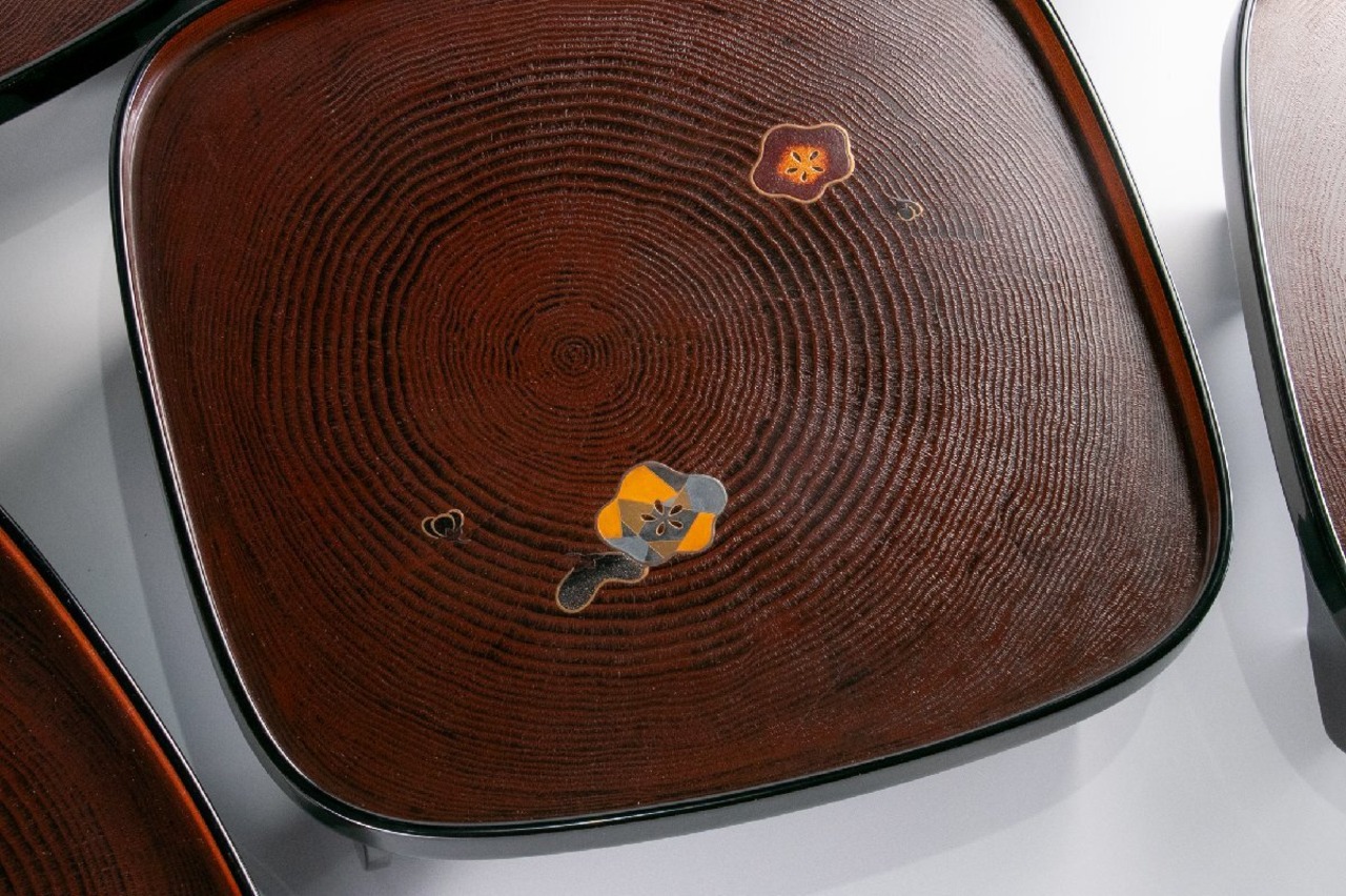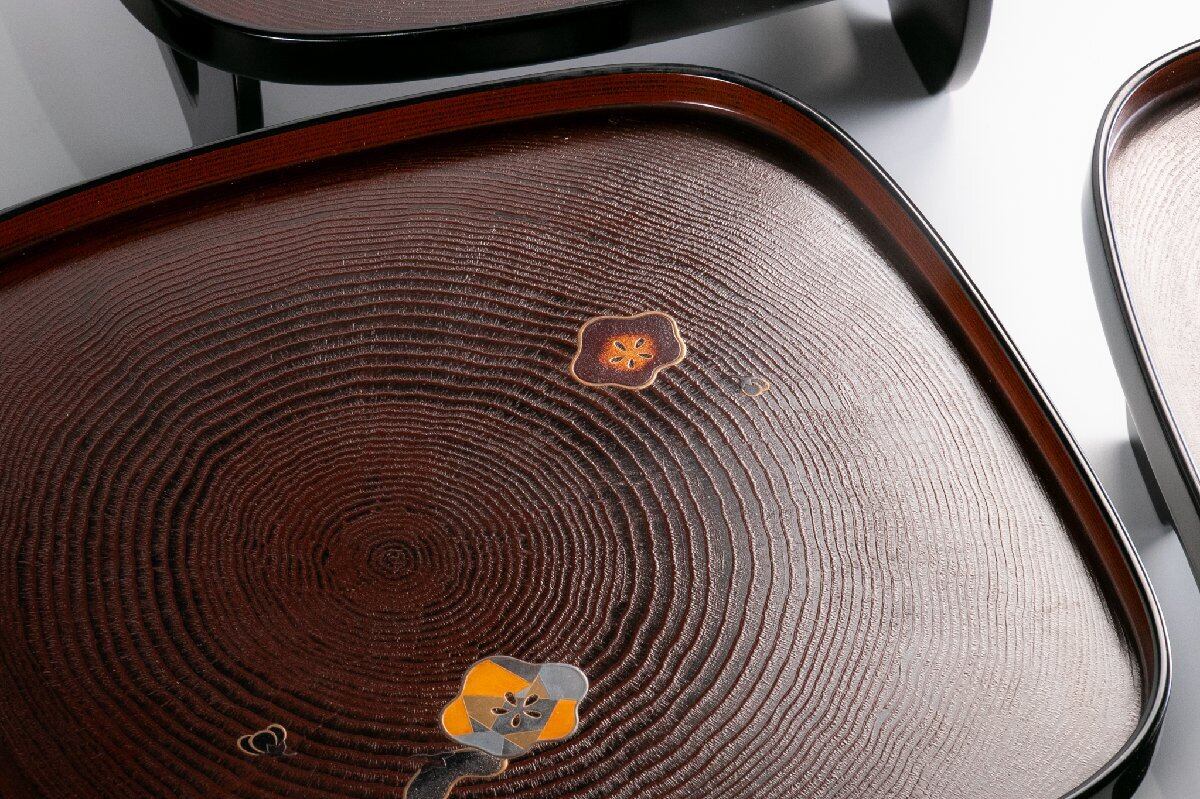 【うつわ】 輪島塗 木目梅花蒔絵 懐石膳 5客 箱付 E584A バラ売り可能です
