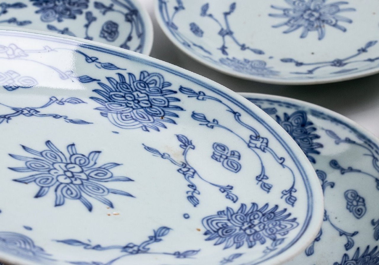 【うつわ】 新渡 染付線描き花卉文中皿 5客 E950 バラ売り可能です