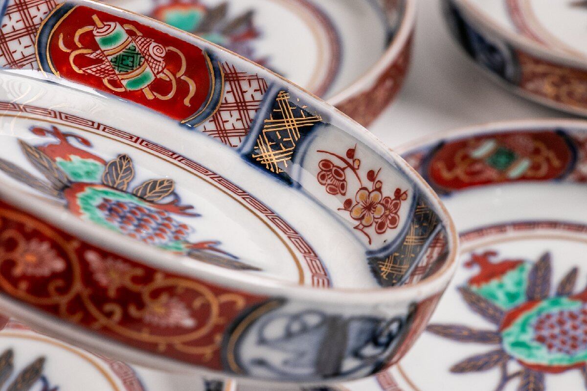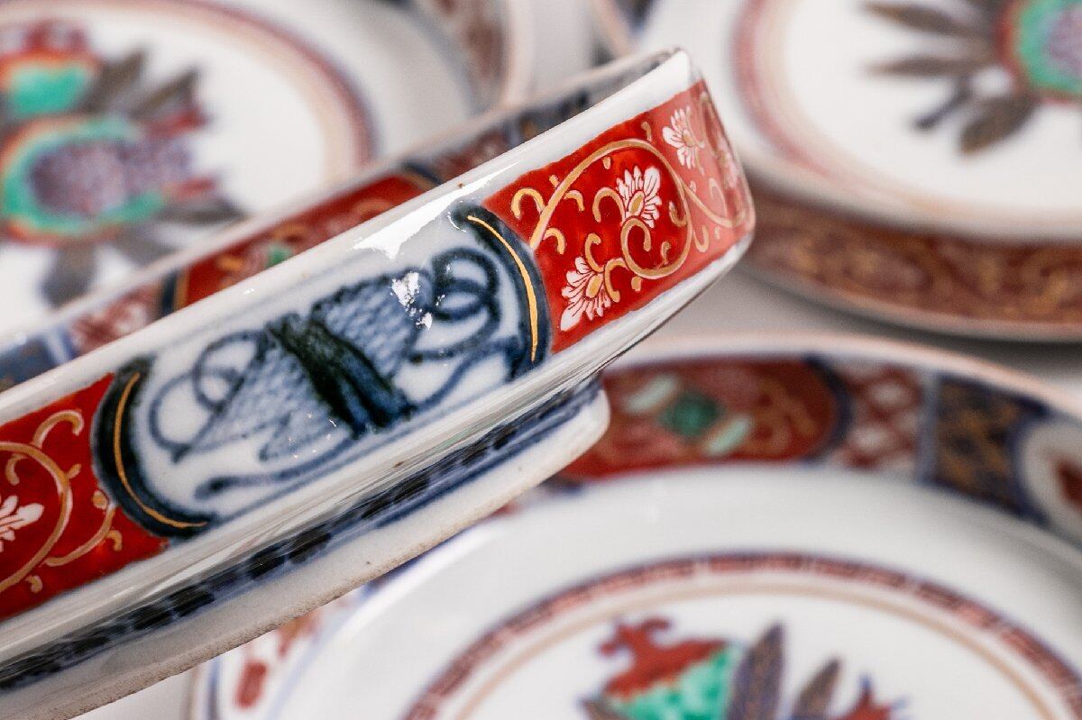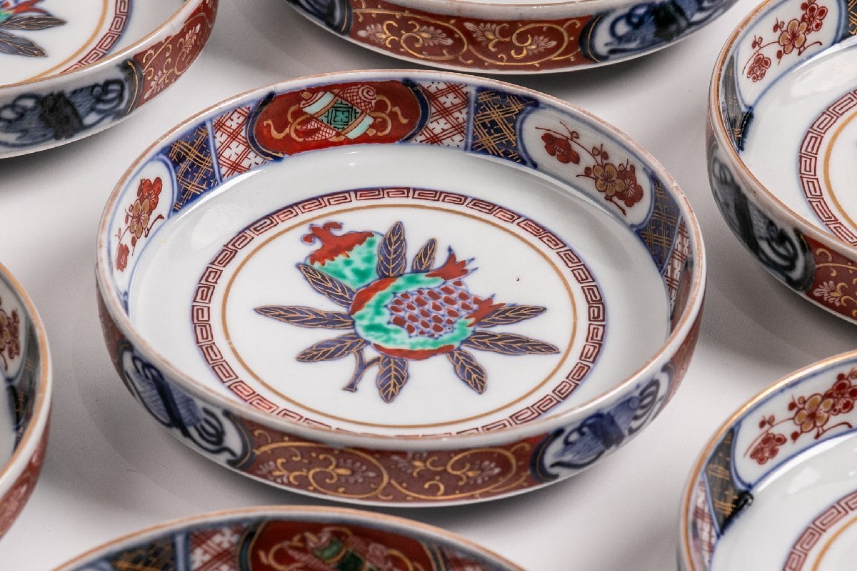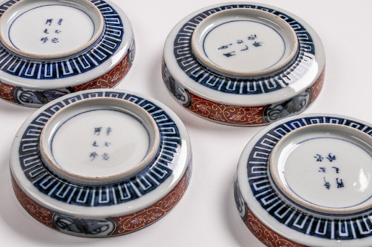 【うつわ】 大聖寺伊万里 金襴手柘榴文小皿 四寸皿 4客 明治時代 E958A バラ売り可能です