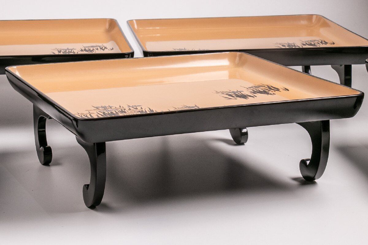 【うつわ】輪島塗 堅地菖蒲蒔絵 懐石膳 5客 E923A