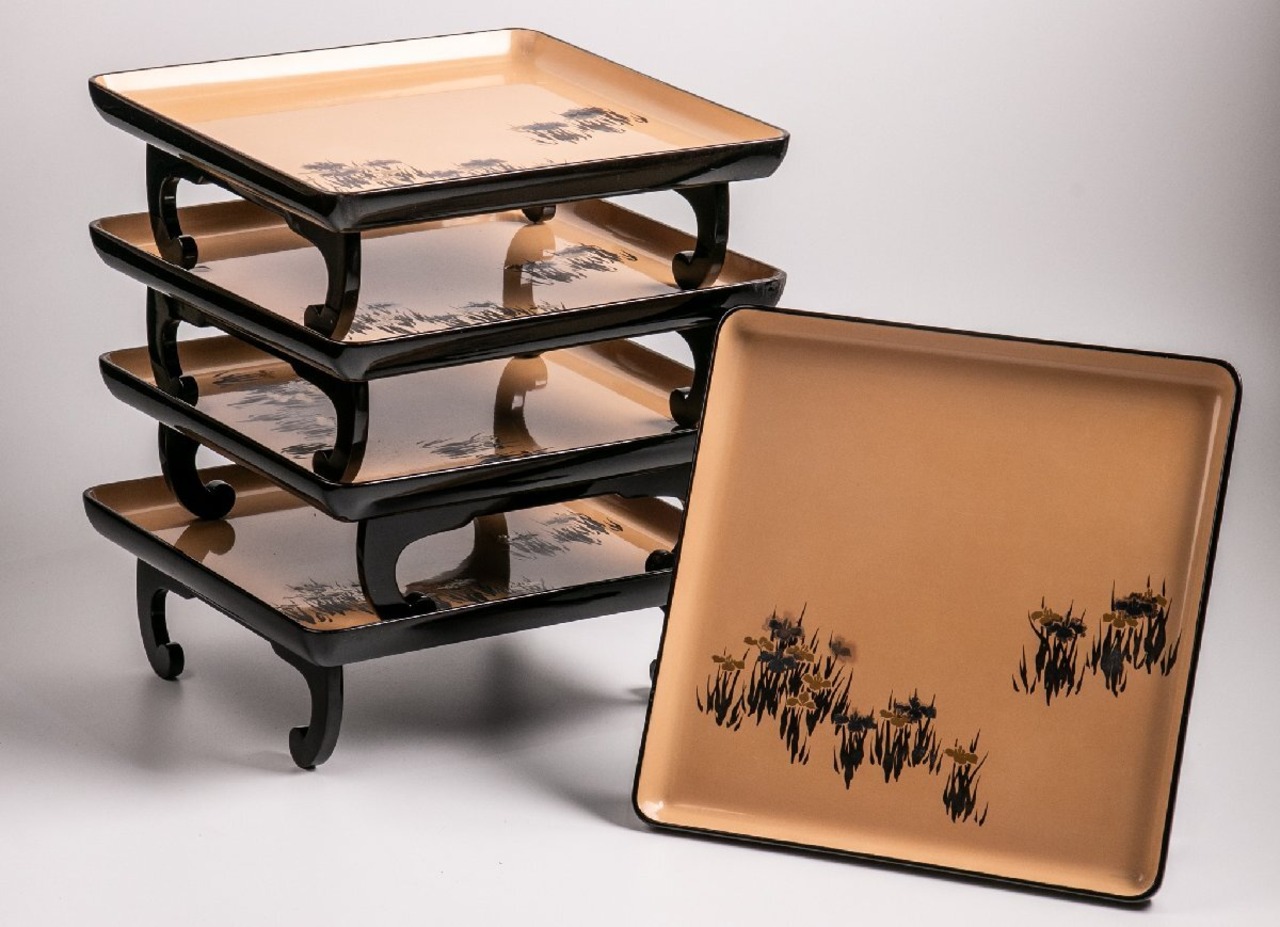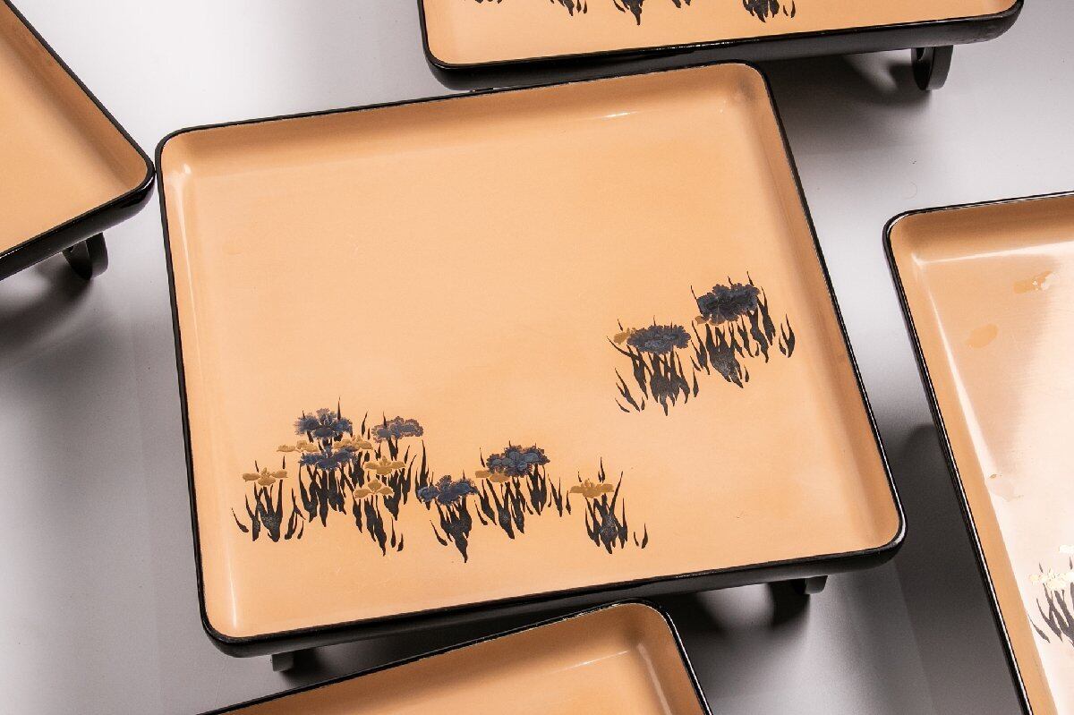 【うつわ】輪島塗 堅地菖蒲蒔絵 懐石膳 5客 E923B