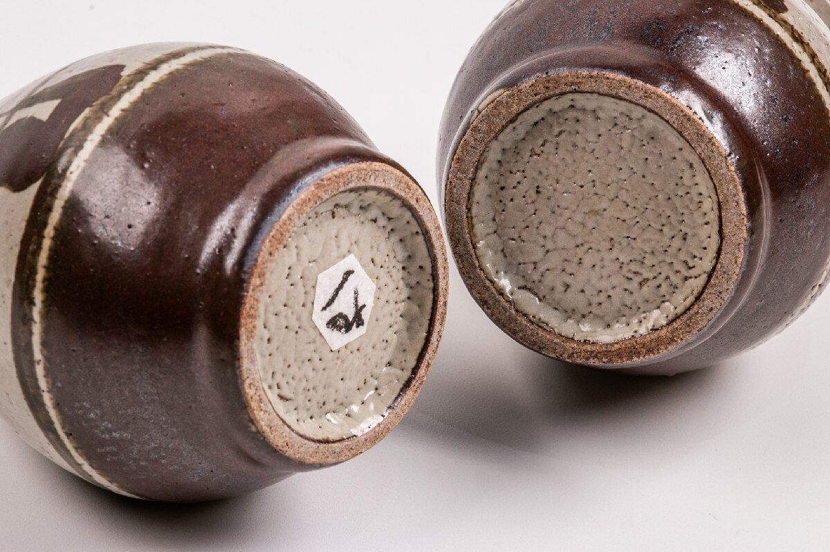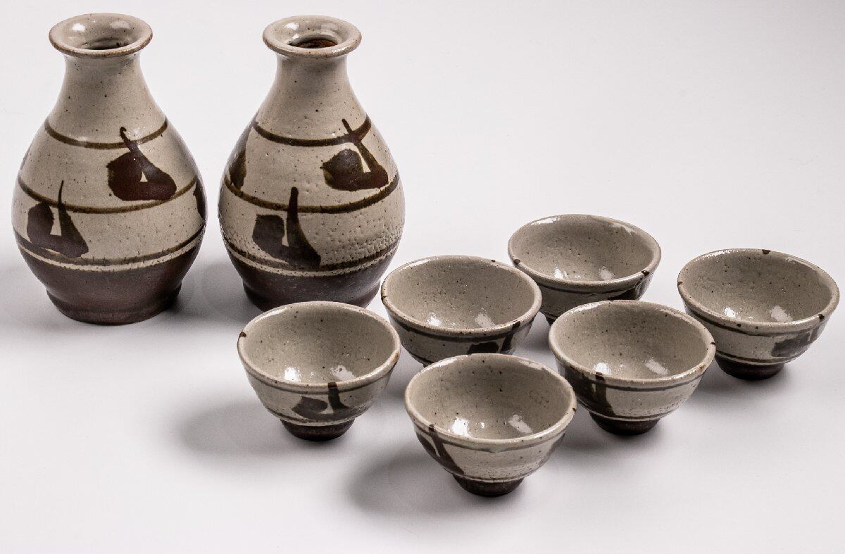 【うつわ】 浜田晋作 鐵絵 酒器 徳利一対 猪口6客 共箱 E1183A