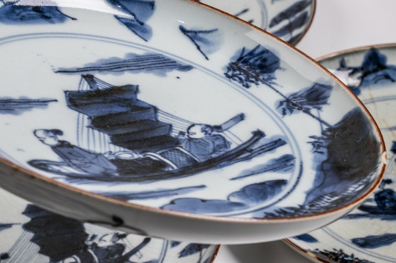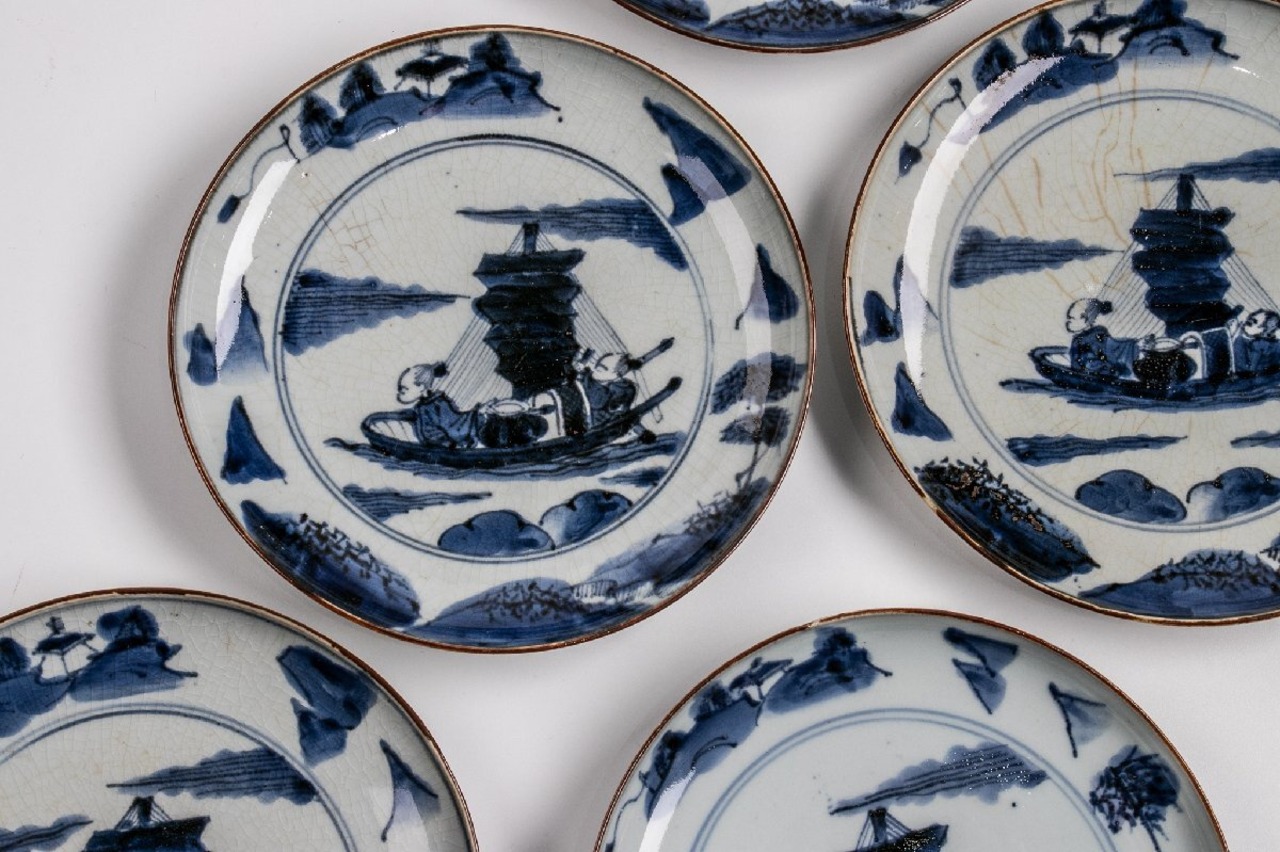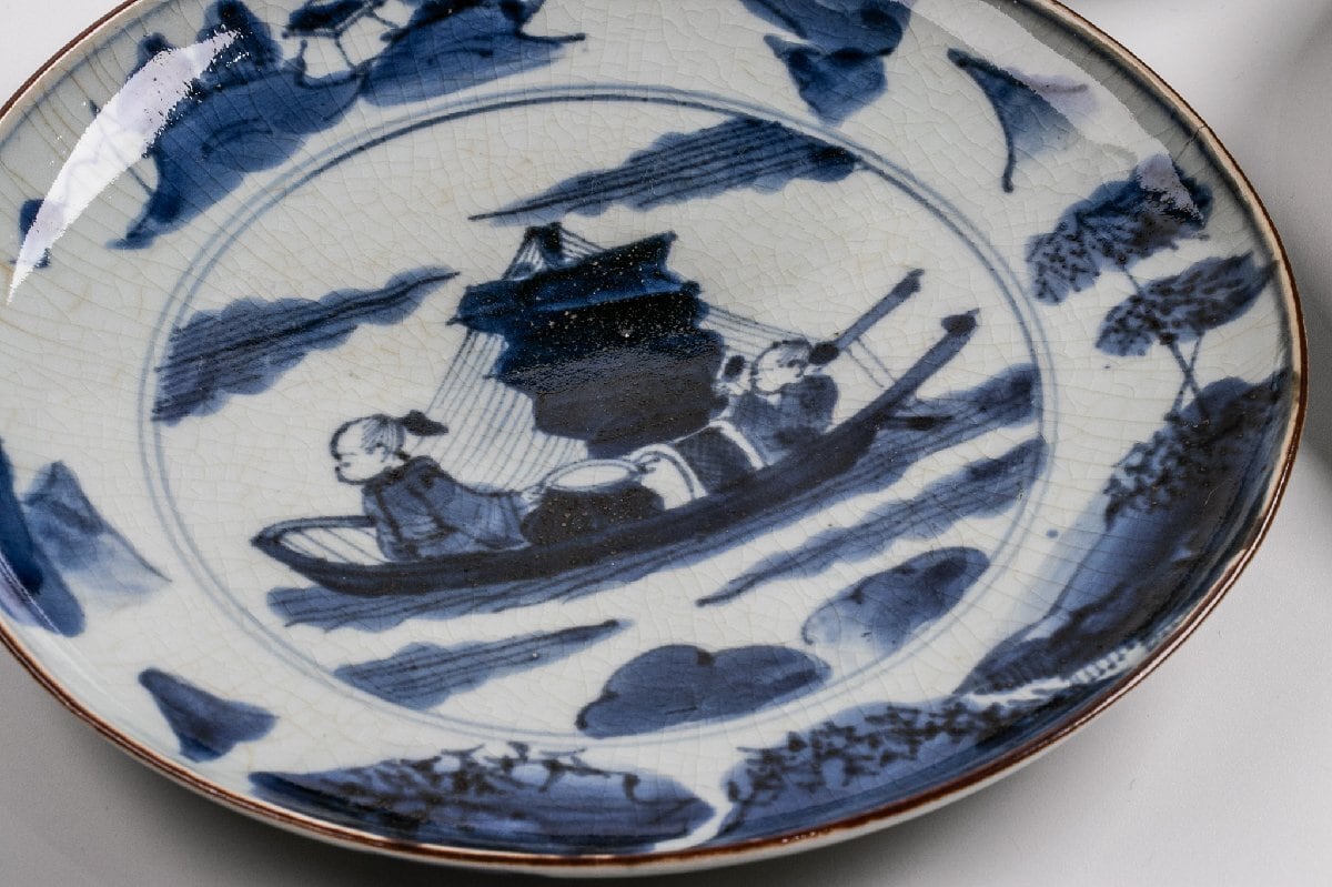【うつわ】 古伊万里 染付山水帆船文中皿 5客セット 江戸後期 E1191