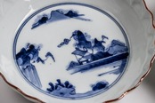 【うつわ】 古伊万里 染付楼閣山水文なます皿 4客 江戸後期 E1188D バラ売り可能です
