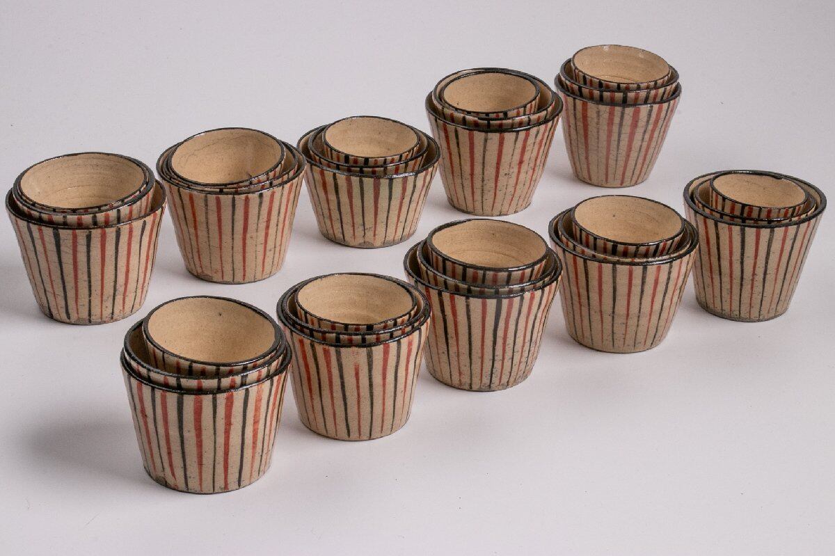 【うつわ】 瀬戸 麦藁手 三ツ入猪口 10客 E957