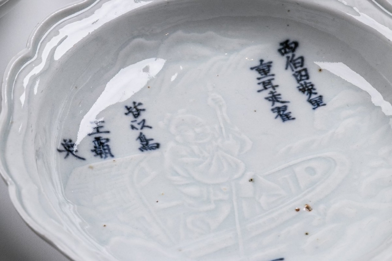 【うつわ】 古伊万里 白磁陽刻太公望文なます皿 10客 江戸後期 E1240 バラ売り可能です