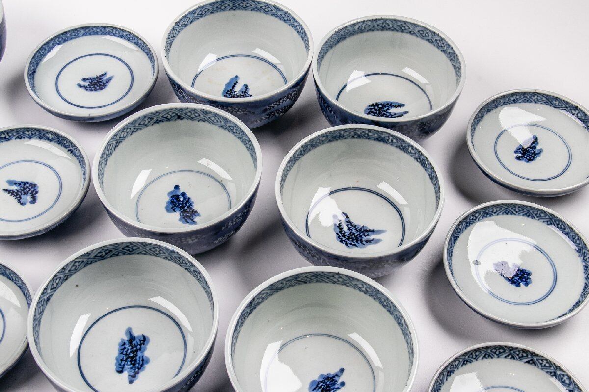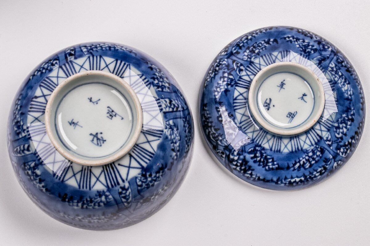 【うつわ】 古伊万里 染付竹林文蓋茶碗 10客 江戸後期 E1216B バラ売り可能です