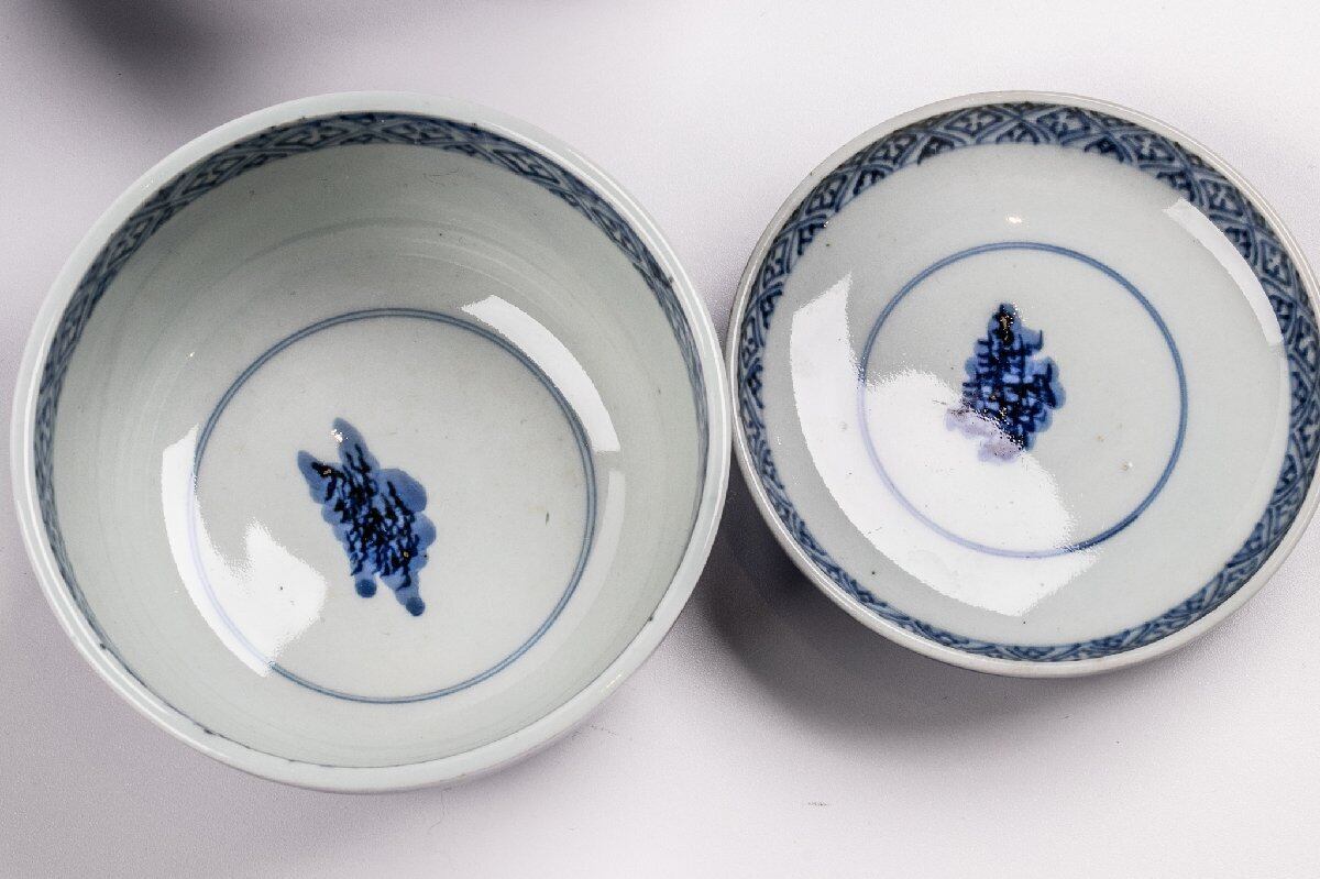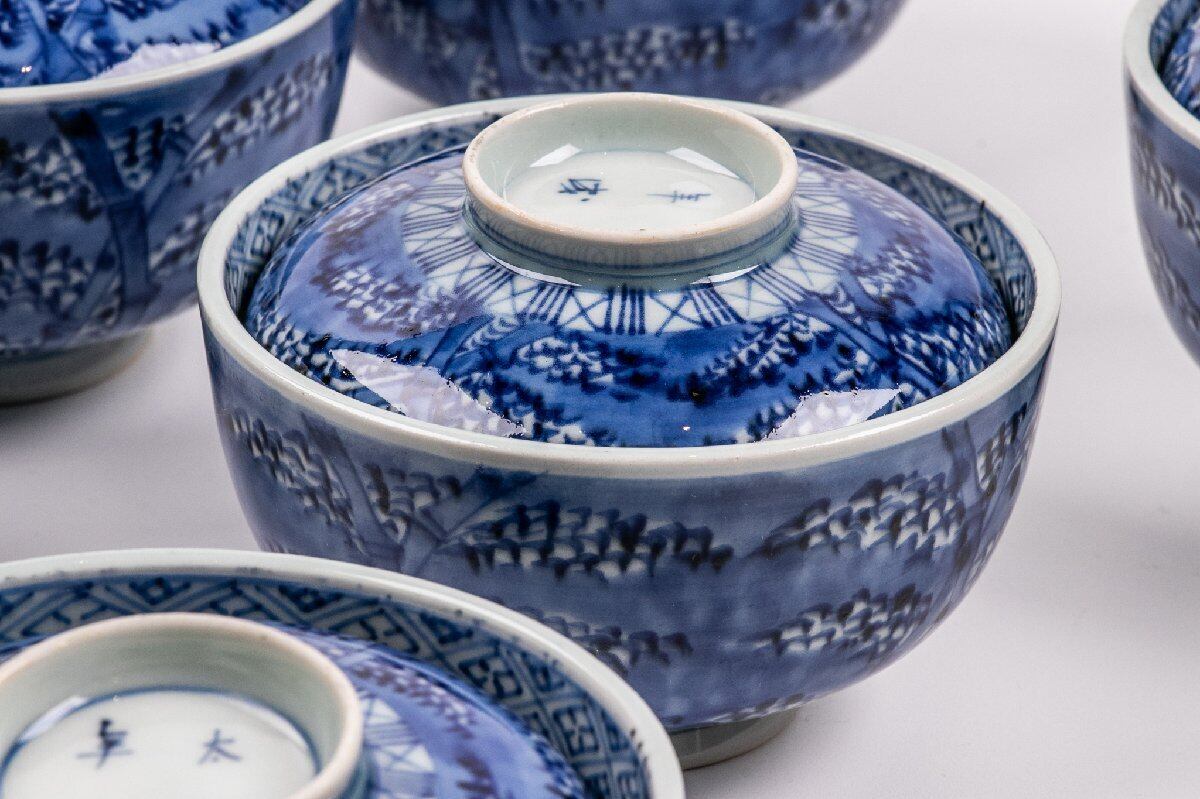 【うつわ】 古伊万里 染付竹林文蓋茶碗 6客 江戸後期 E1216C バラ売り可能です