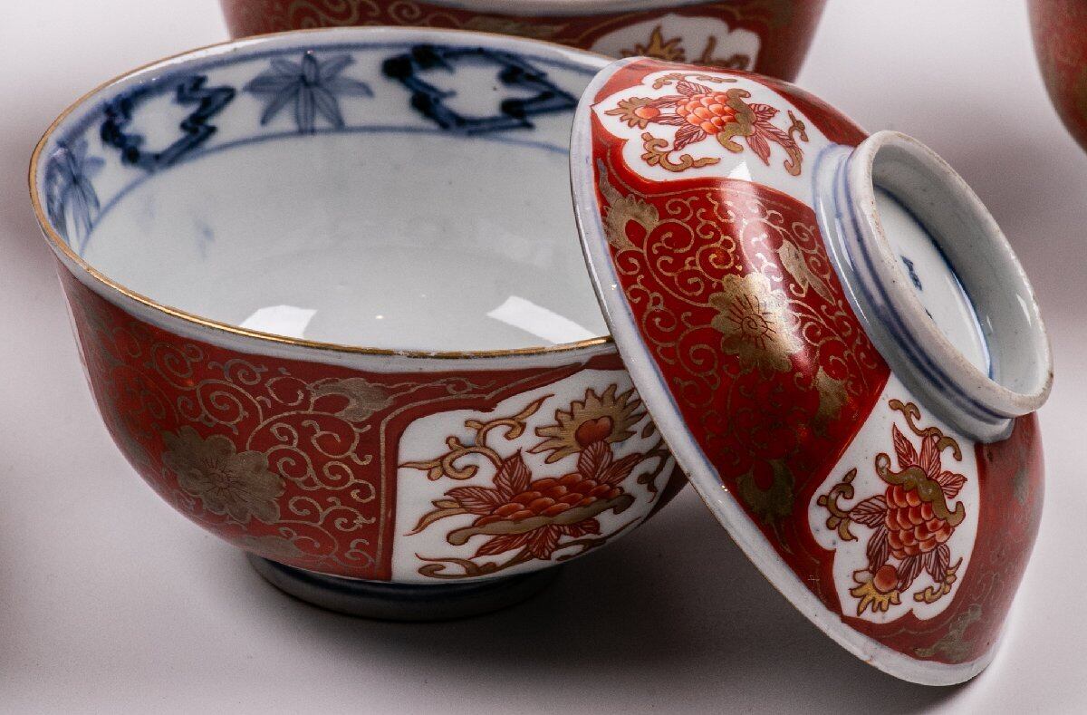 古伊万里 染錦唐華雲龍文蓋茶碗 5客 明治時代 E1215B バラ売り可能です
