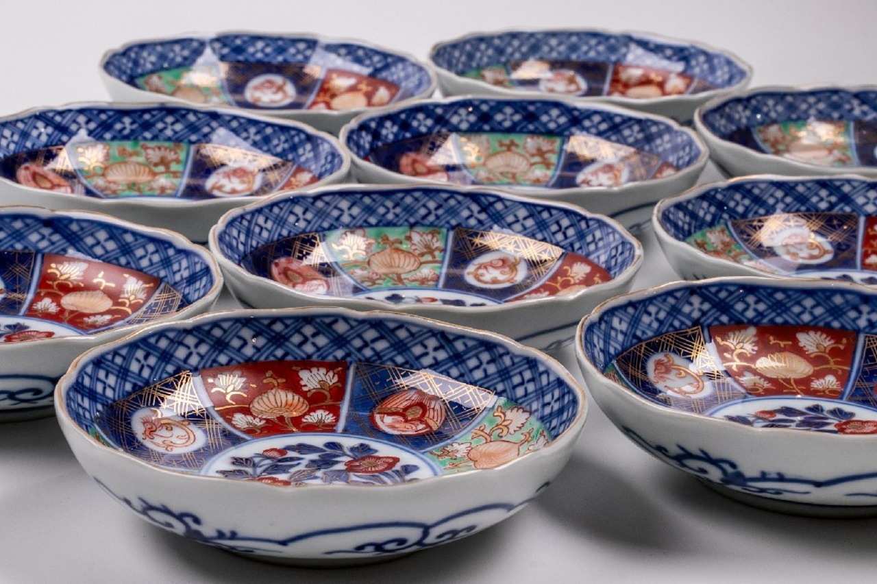 古伊万里 金襴手草花龍文四寸皿 10客 明治時代 E1223A バラ売り可能です