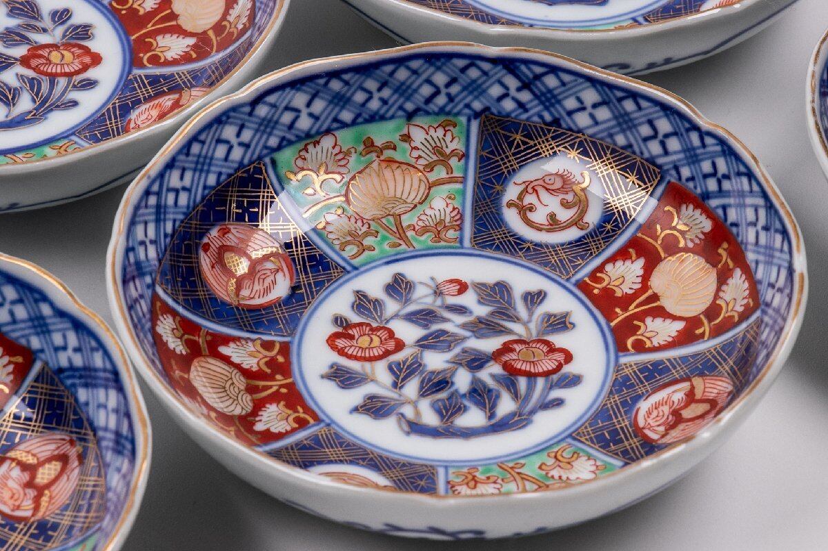 古伊万里 金襴手草花龍文四寸皿 9客 明治時代 E1223B バラ売り可能です