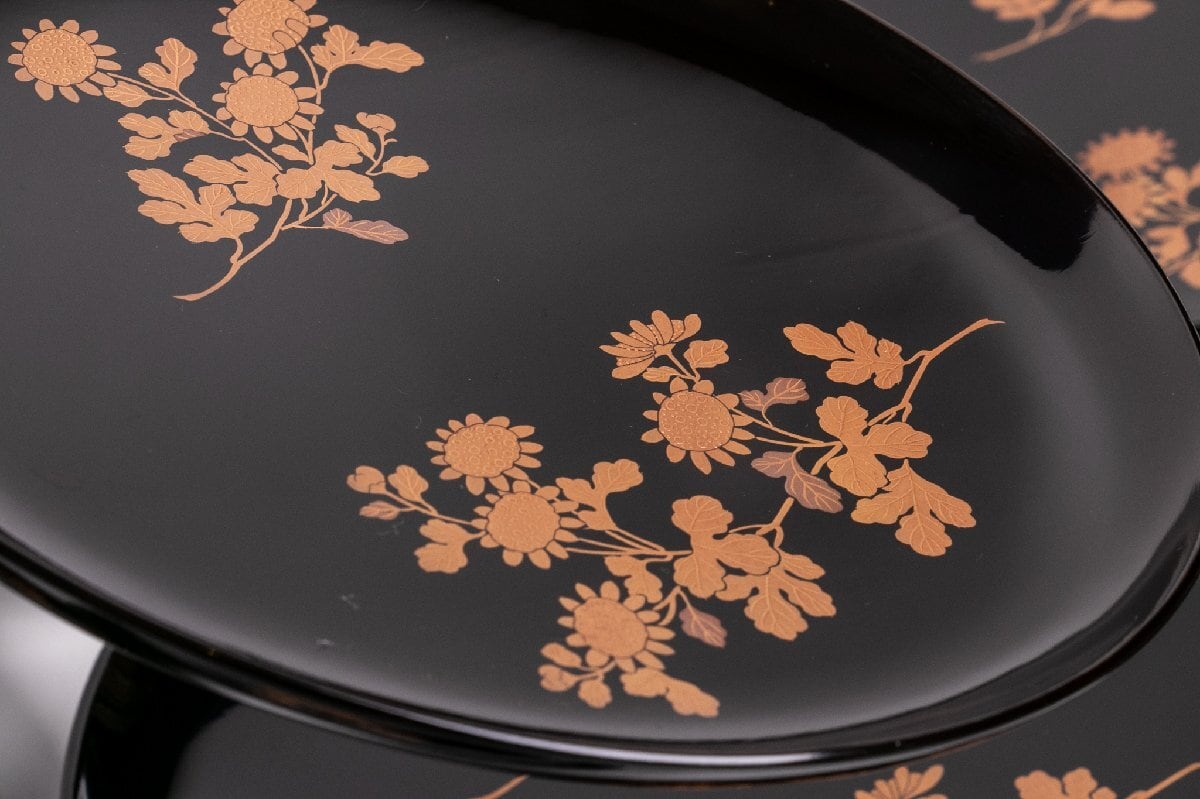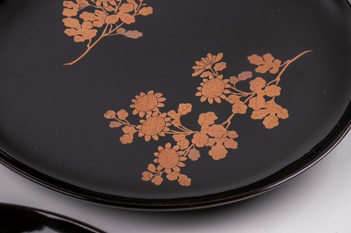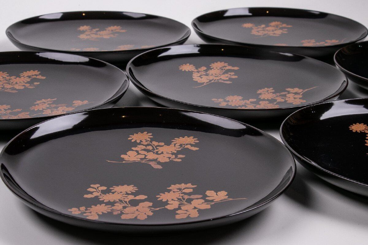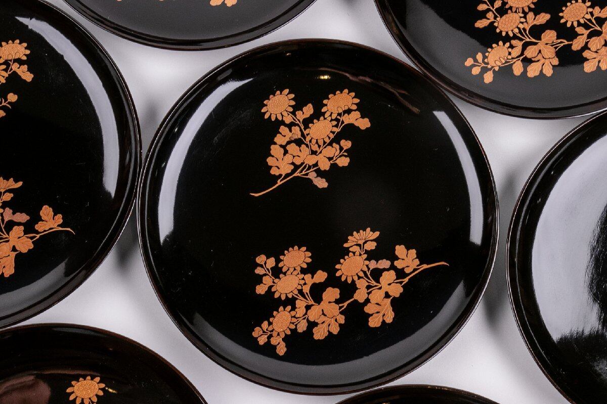 真塗 菊花蒔絵菓子皿 7客 E1332 バラ売り可能です