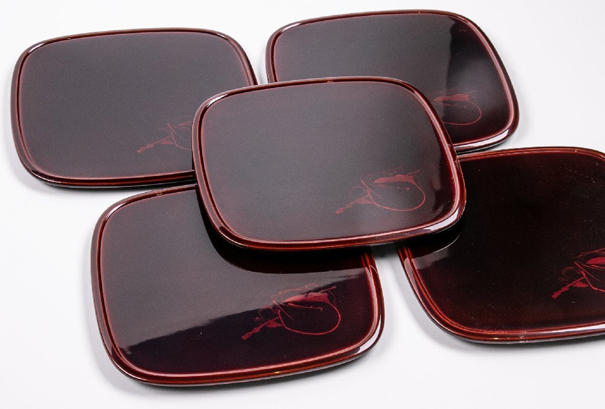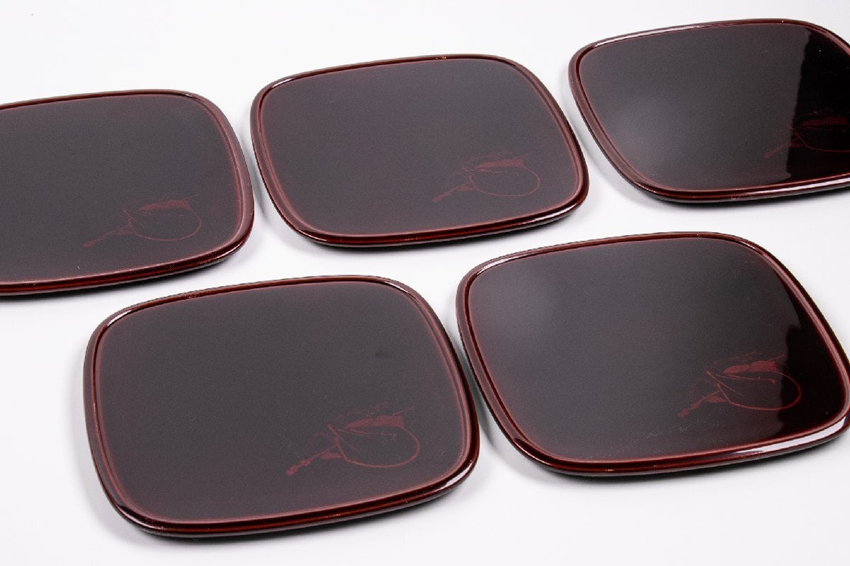 輪島塗 蝋色菓子皿 5客 箱付 E1456A