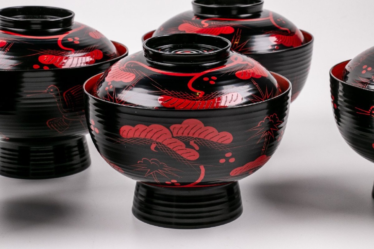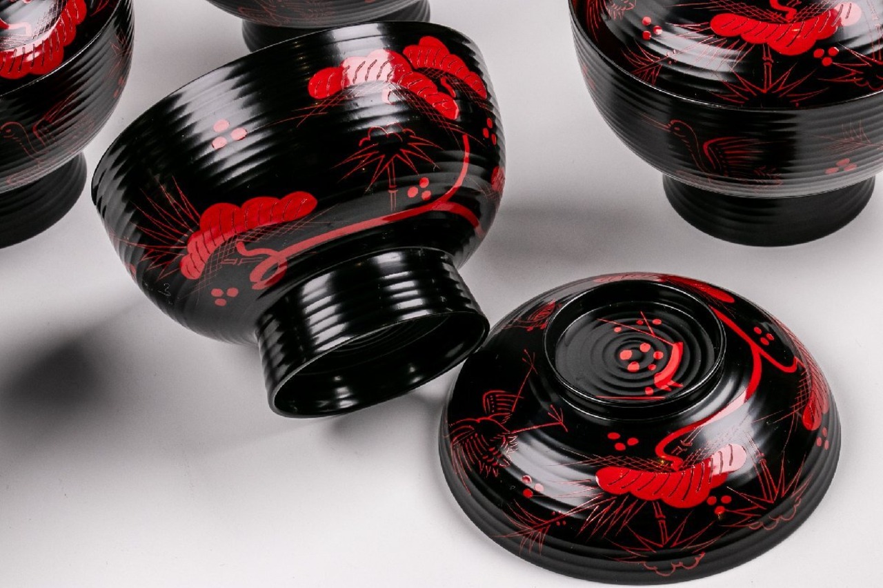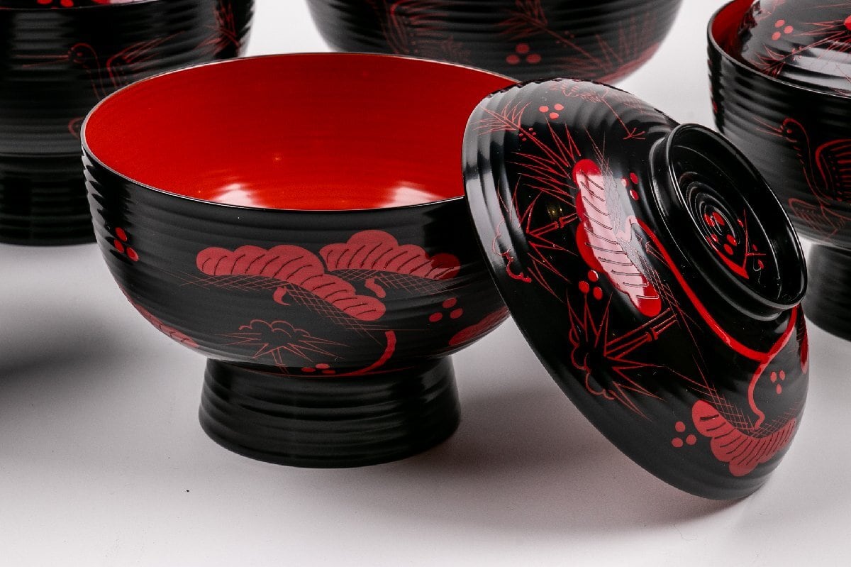 輪島塗 蓬莱山絵 合鹿碗 煮物椀 5客 箱付 E1497