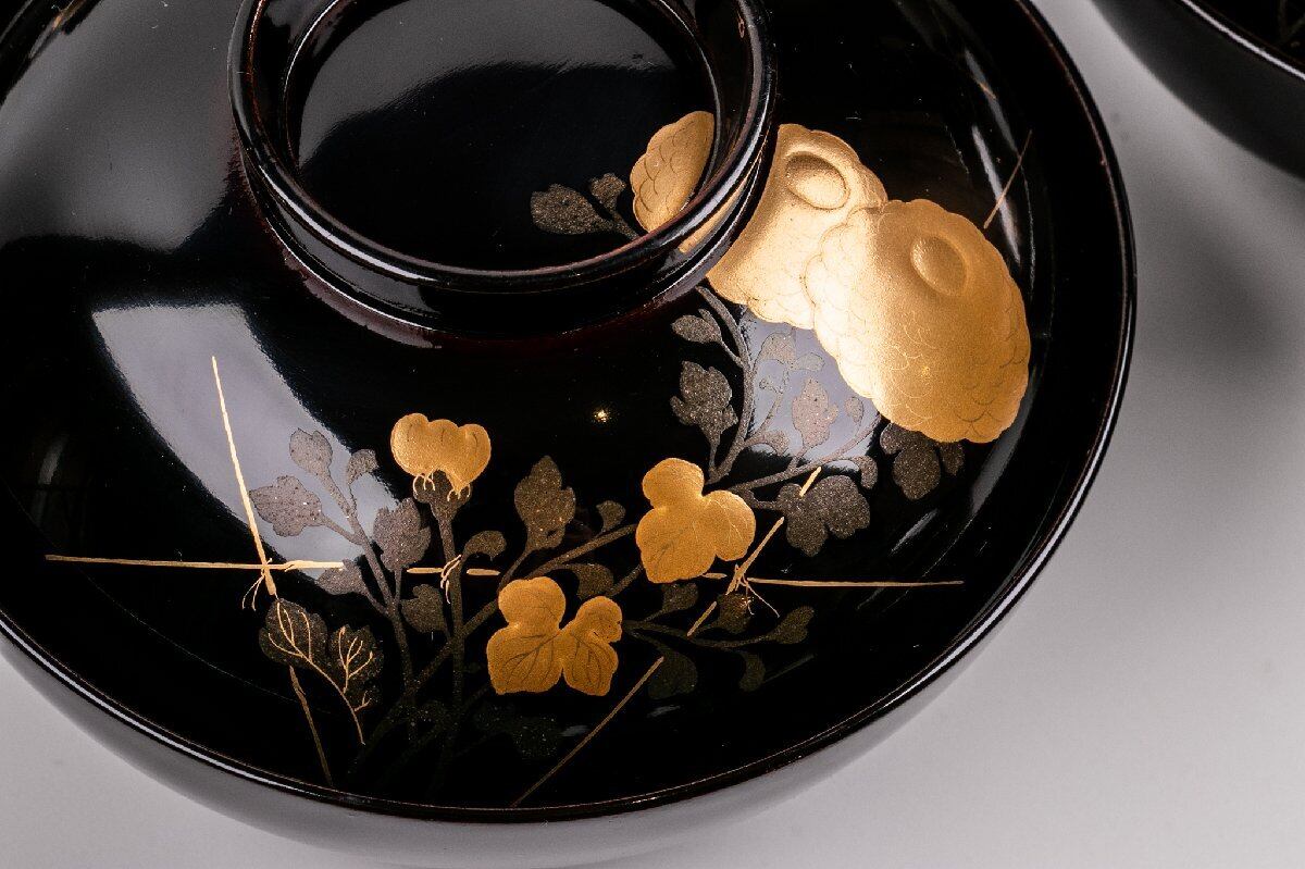 真塗 菊花蒔絵 吸物椀 5客 E1416 バラ売り可能です